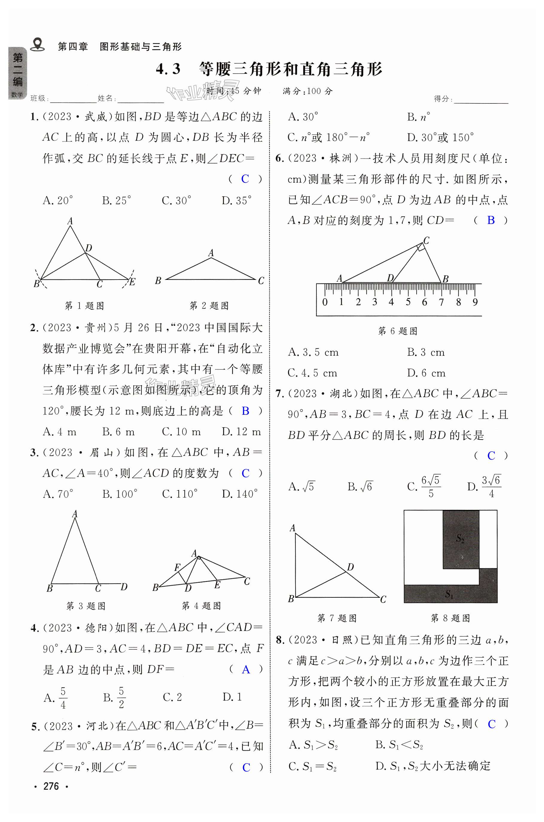 注:目前有些书本章节名称可能整理的还不是很完善,但都是按照顺序排列的,请同学们按照顺序仔细查找。练习册 2024年全程导航初中总复习数学菏泽专版 答案主要是用来给同学们做完题方便对答案用的,请勿直接抄袭。