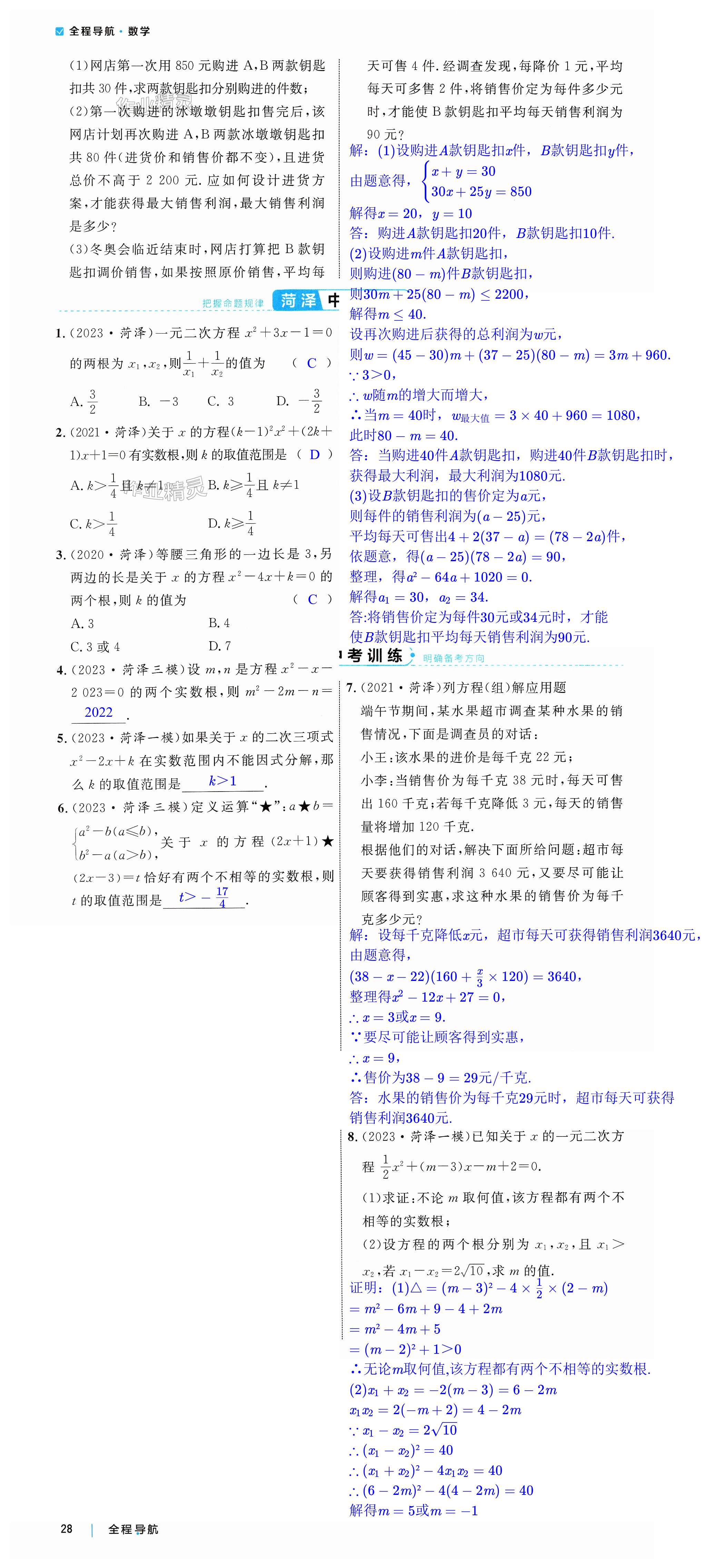 注:目前有些书本章节名称可能整理的还不是很完善,但都是按照顺序排列的,请同学们按照顺序仔细查找。练习册 2024年全程导航初中总复习数学菏泽专版 答案主要是用来给同学们做完题方便对答案用的,请勿直接抄袭。