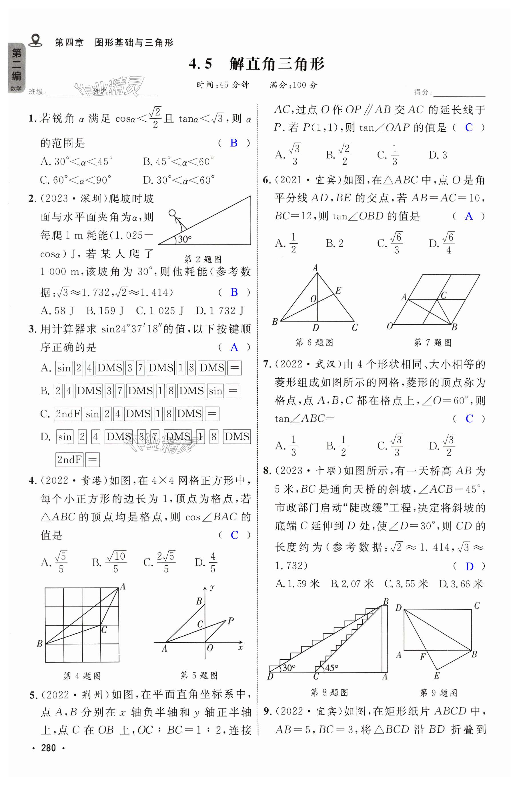 注:目前有些书本章节名称可能整理的还不是很完善,但都是按照顺序排列的,请同学们按照顺序仔细查找。练习册 2024年全程导航初中总复习数学菏泽专版 答案主要是用来给同学们做完题方便对答案用的,请勿直接抄袭。