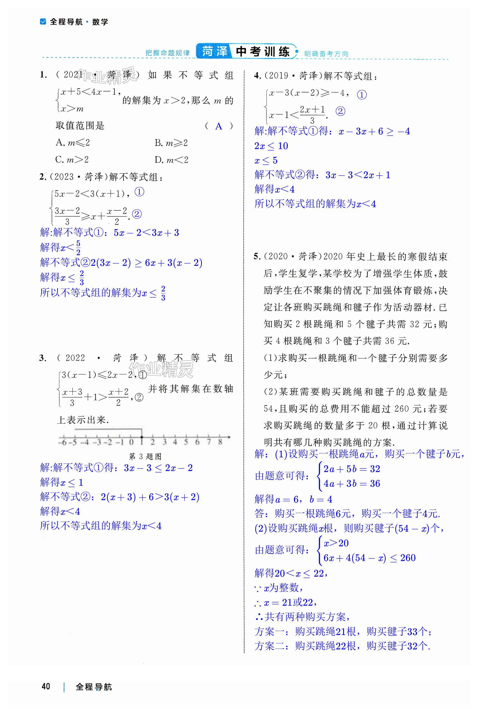 注:目前有些书本章节名称可能整理的还不是很完善,但都是按照顺序排列的,请同学们按照顺序仔细查找。练习册 2024年全程导航初中总复习数学菏泽专版 答案主要是用来给同学们做完题方便对答案用的,请勿直接抄袭。