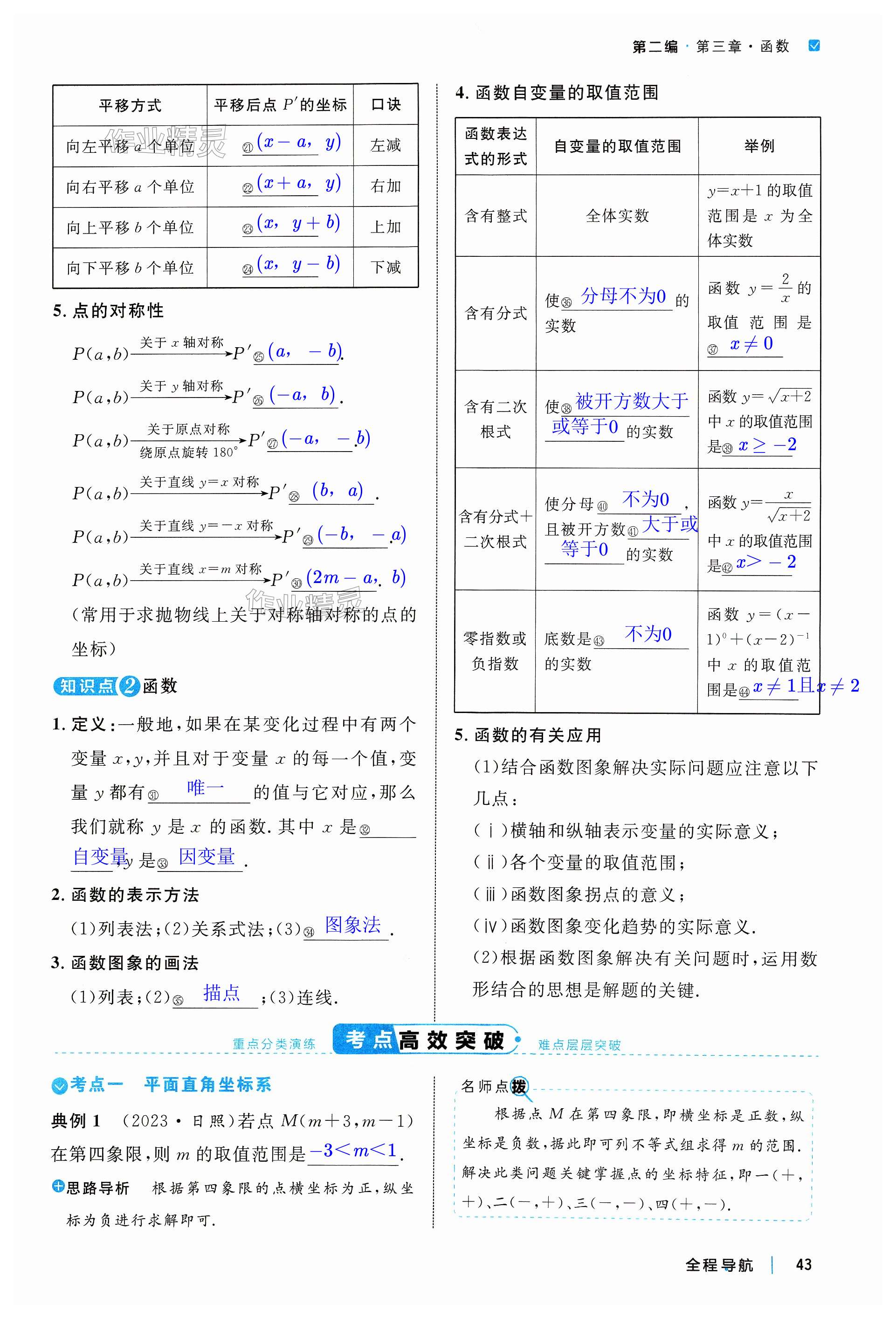 注:目前有些书本章节名称可能整理的还不是很完善,但都是按照顺序排列的,请同学们按照顺序仔细查找。练习册 2024年全程导航初中总复习数学菏泽专版 答案主要是用来给同学们做完题方便对答案用的,请勿直接抄袭。