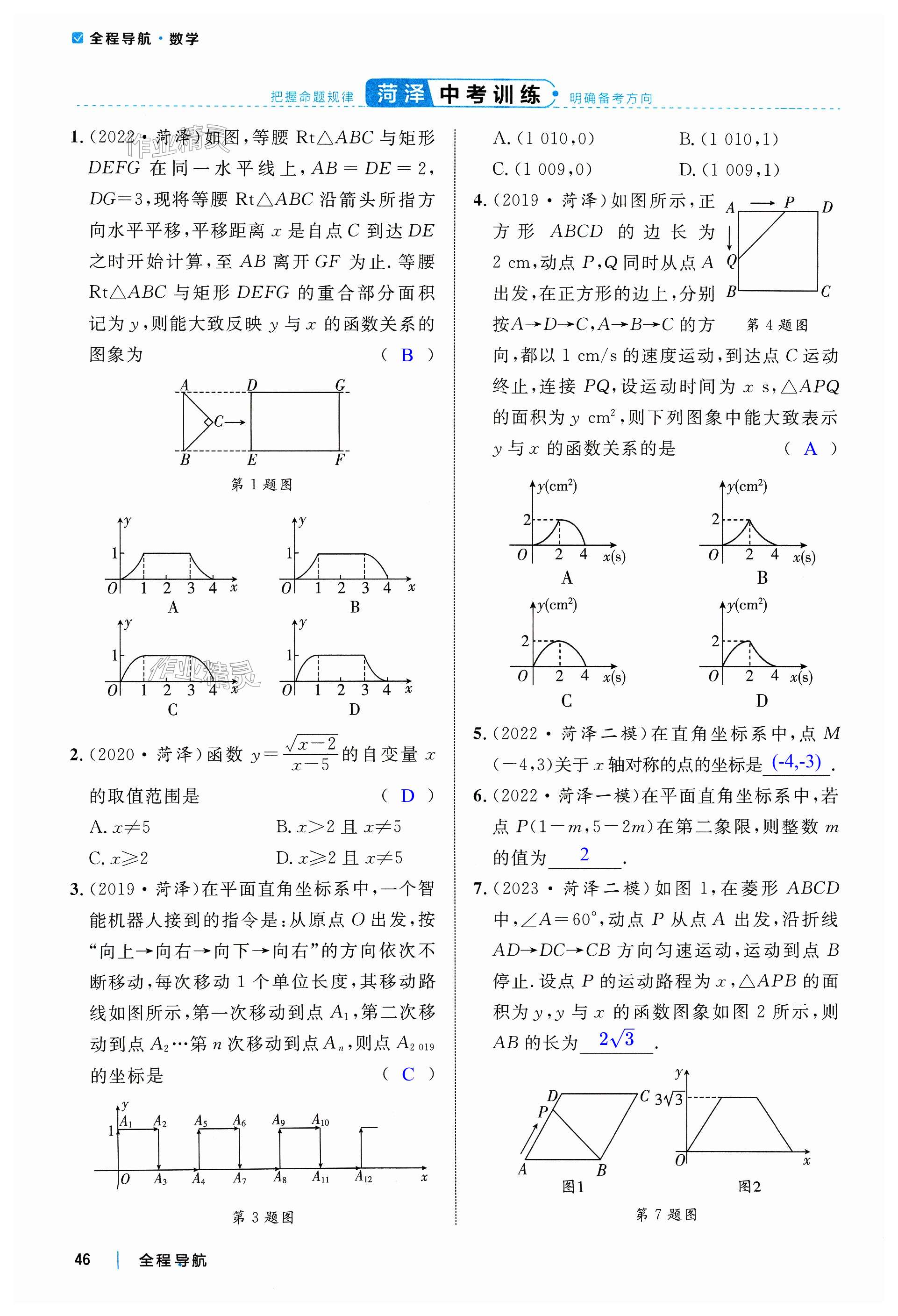注:目前有些书本章节名称可能整理的还不是很完善,但都是按照顺序排列的,请同学们按照顺序仔细查找。练习册 2024年全程导航初中总复习数学菏泽专版 答案主要是用来给同学们做完题方便对答案用的,请勿直接抄袭。