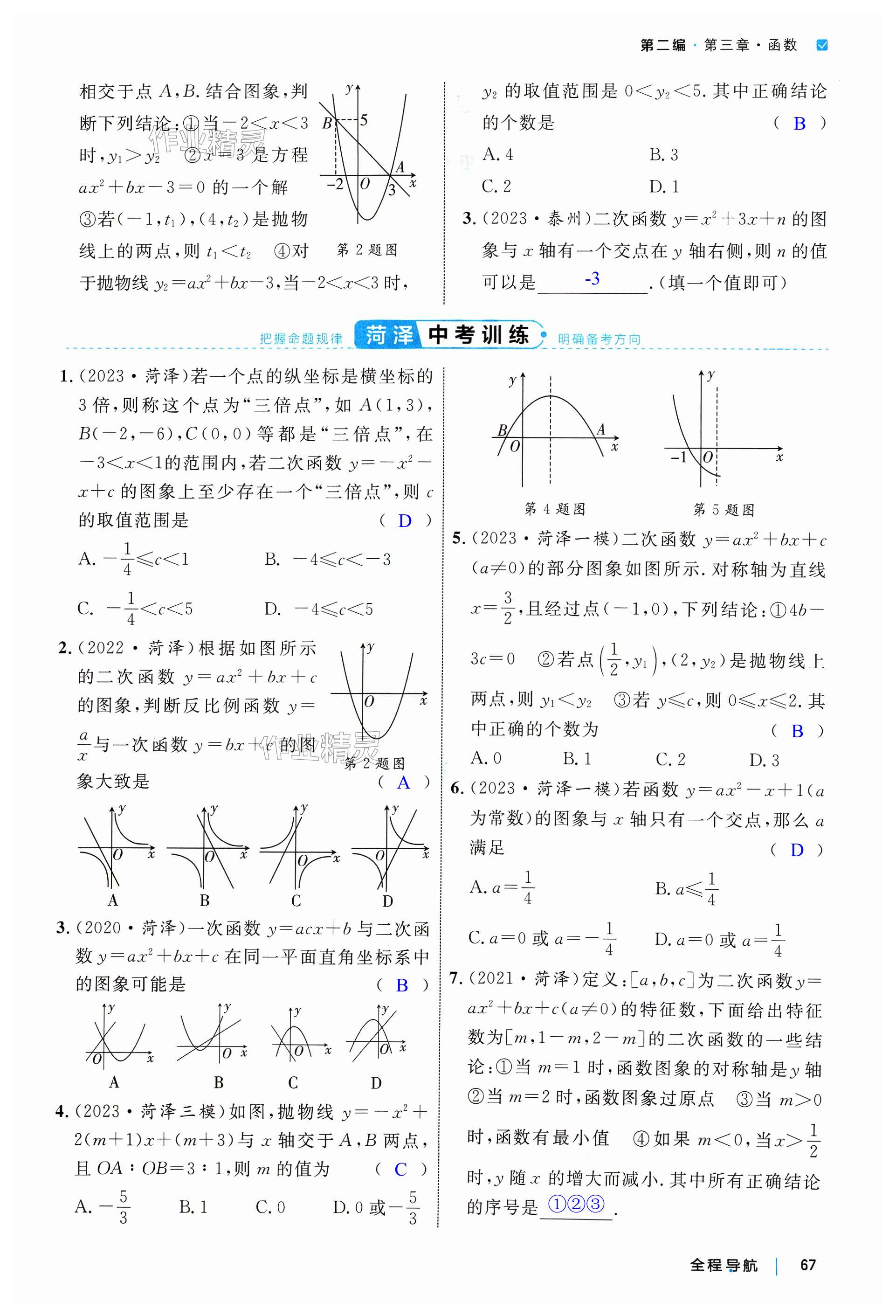 注:目前有些书本章节名称可能整理的还不是很完善,但都是按照顺序排列的,请同学们按照顺序仔细查找。练习册 2024年全程导航初中总复习数学菏泽专版 答案主要是用来给同学们做完题方便对答案用的,请勿直接抄袭。