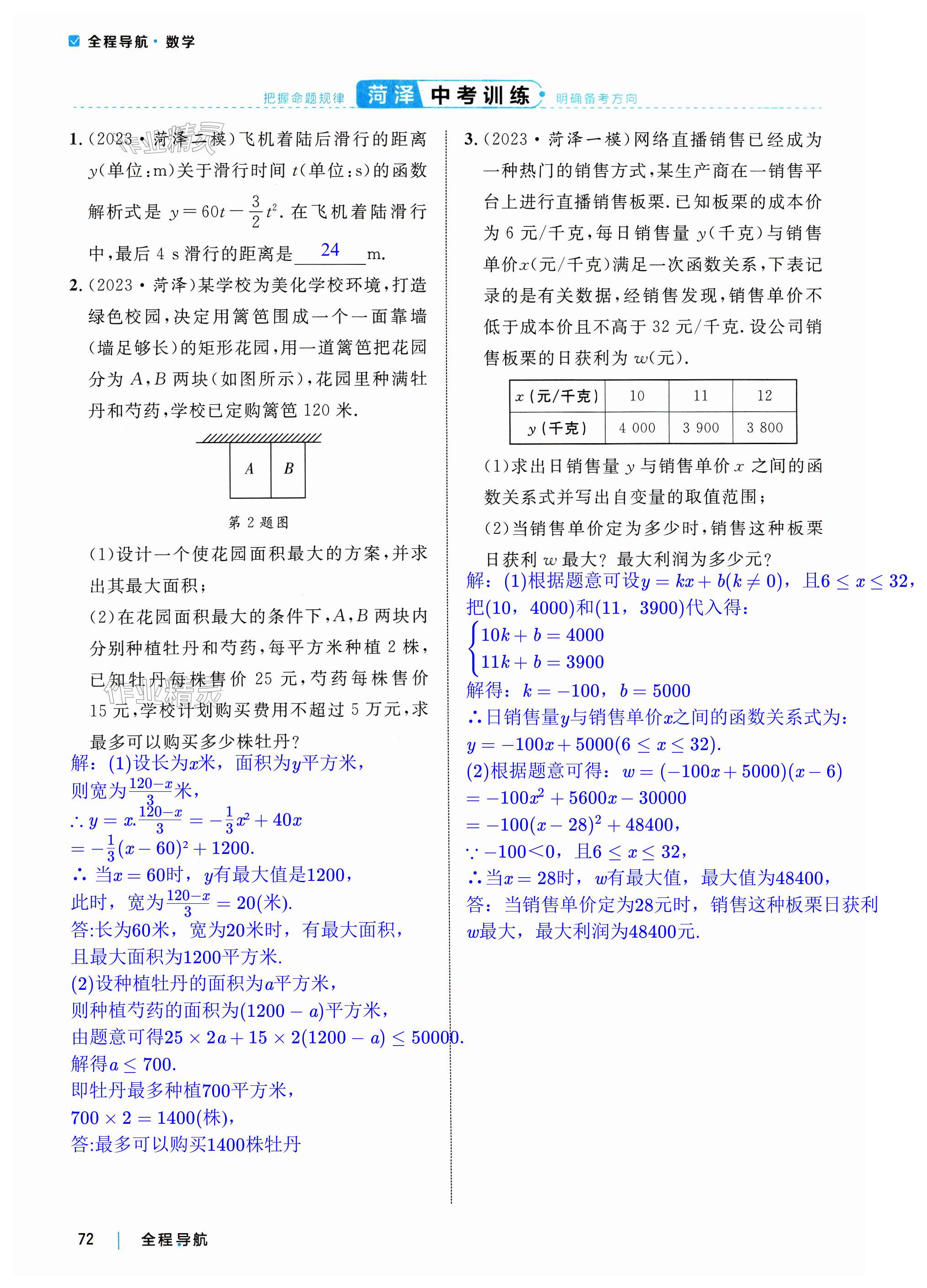 注:目前有些书本章节名称可能整理的还不是很完善,但都是按照顺序排列的,请同学们按照顺序仔细查找。练习册 2024年全程导航初中总复习数学菏泽专版 答案主要是用来给同学们做完题方便对答案用的,请勿直接抄袭。