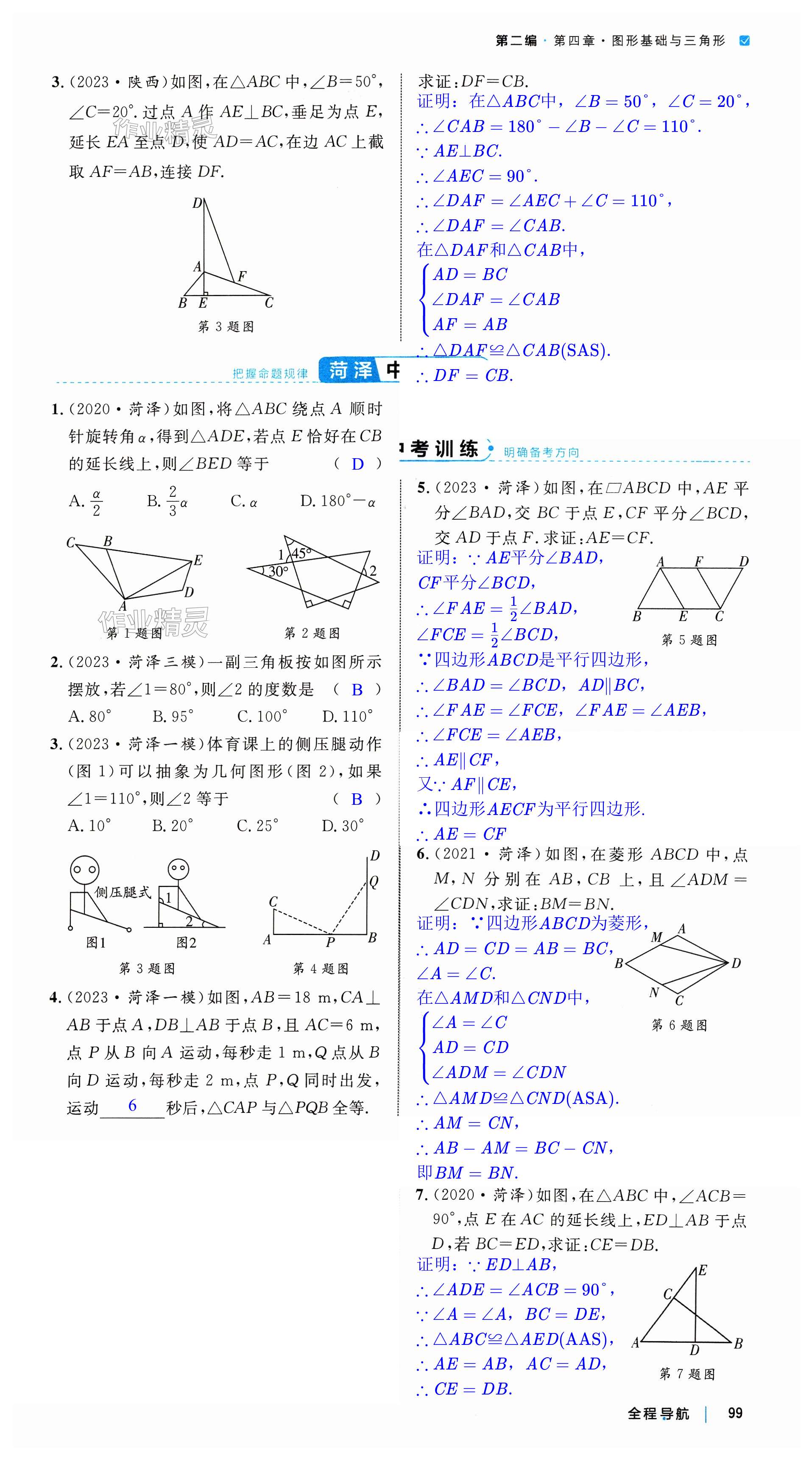 注:目前有些书本章节名称可能整理的还不是很完善,但都是按照顺序排列的,请同学们按照顺序仔细查找。练习册 2024年全程导航初中总复习数学菏泽专版 答案主要是用来给同学们做完题方便对答案用的,请勿直接抄袭。