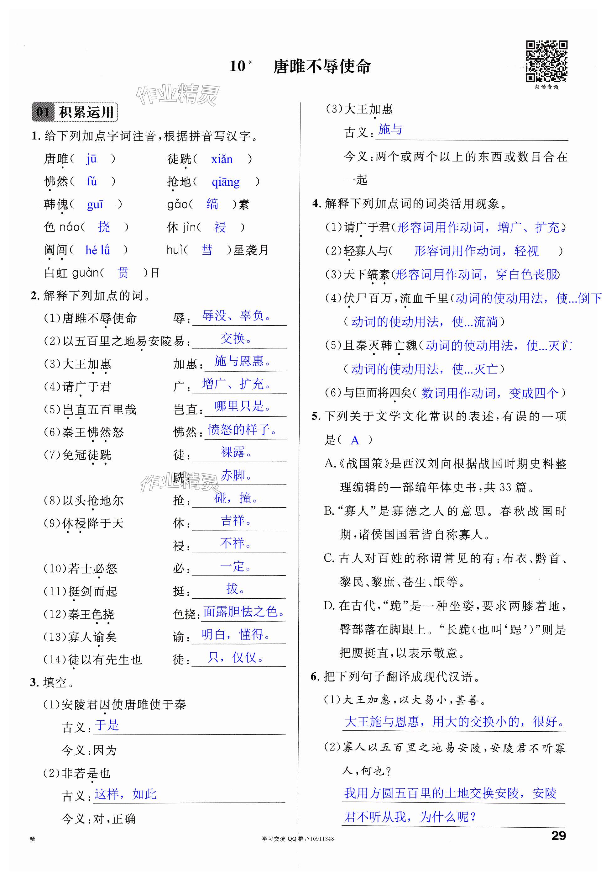 注:目前有些书本章节名称可能整理的还不是很完善,但都是按照顺序排列的,请同学们按照顺序仔细查找。练习册 2024年名校课堂九年级语文下册人教版江西专版 答案主要是用来给同学们做完题方便对答案用的,请勿直接抄袭。