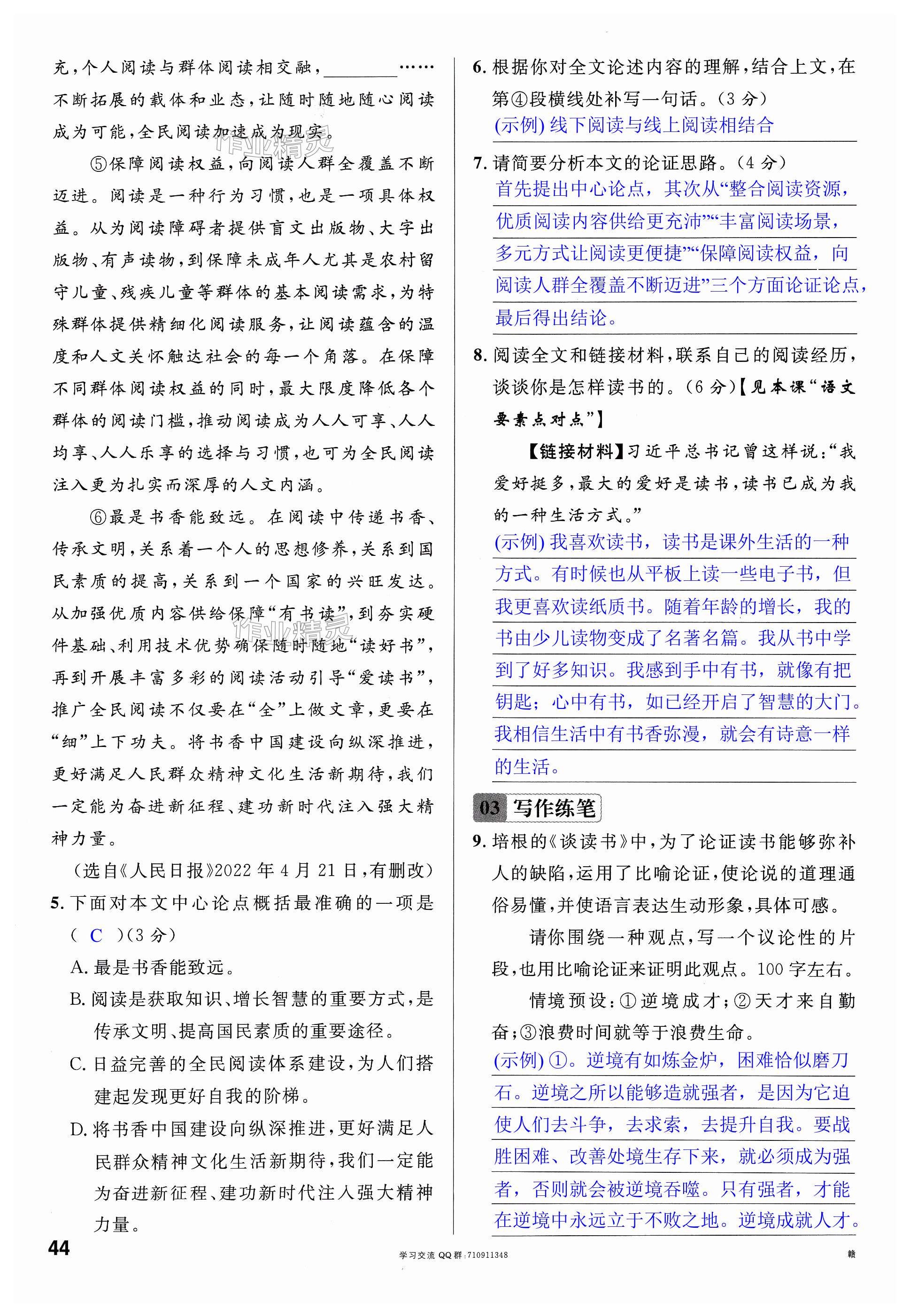 注:目前有些书本章节名称可能整理的还不是很完善,但都是按照顺序排列的,请同学们按照顺序仔细查找。练习册 2024年名校课堂九年级语文下册人教版江西专版 答案主要是用来给同学们做完题方便对答案用的,请勿直接抄袭。