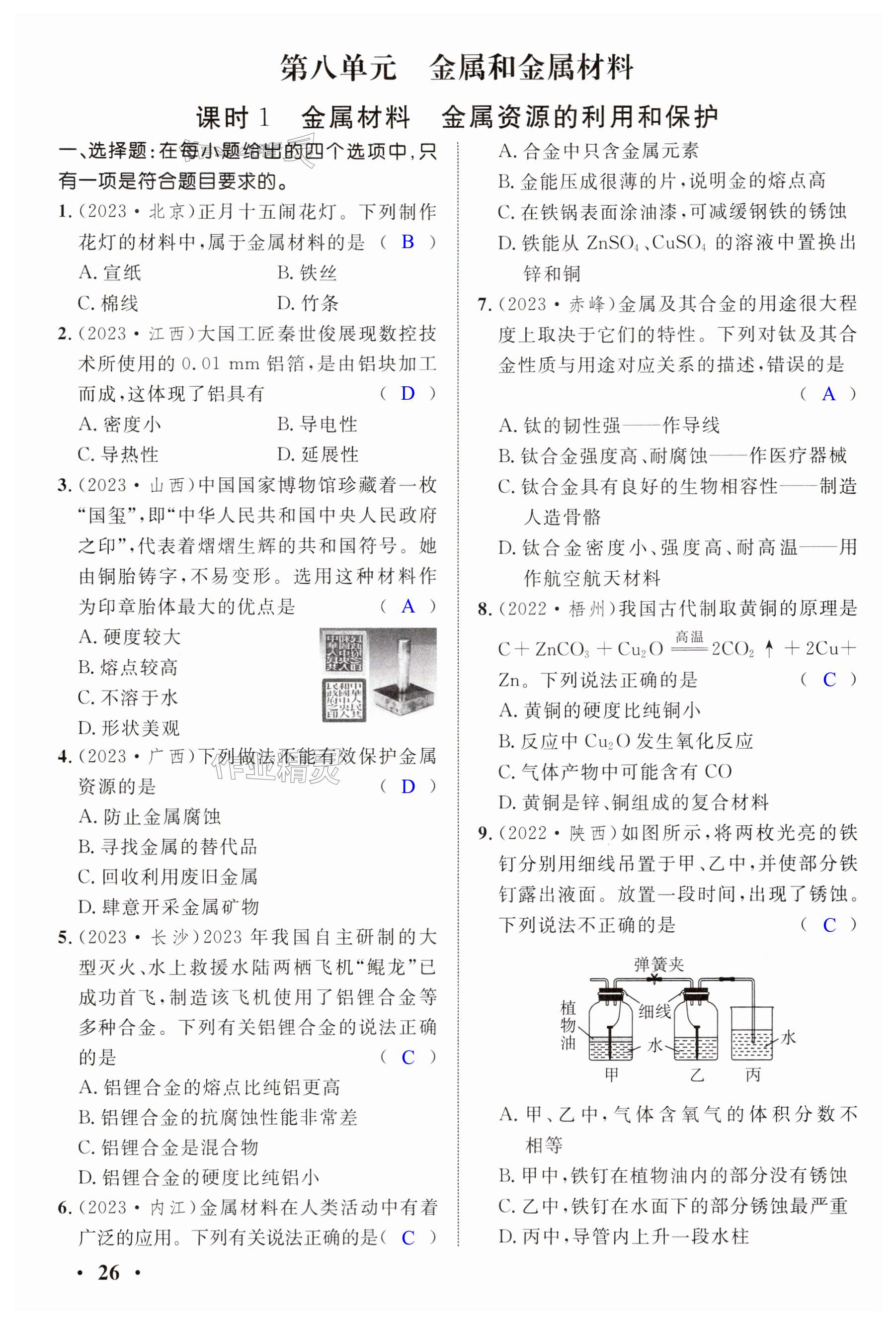 注:目前有些书本章节名称可能整理的还不是很完善,但都是按照顺序排列的,请同学们按照顺序仔细查找。练习册 2024年中考对策化学人教版 答案主要是用来给同学们做完题方便对答案用的,请勿直接抄袭。