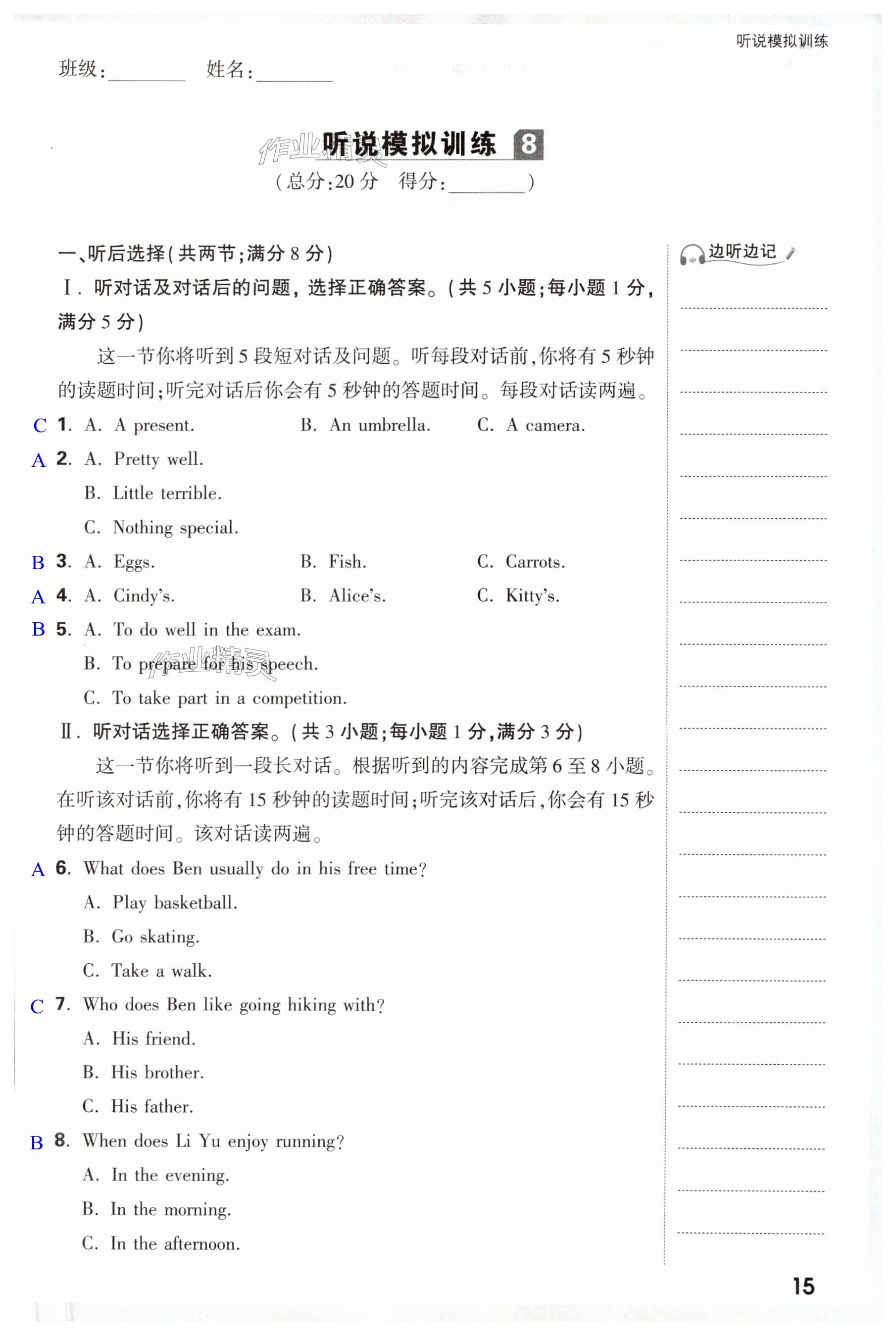 注:目前有些书本章节名称可能整理的还不是很完善,但都是按照顺序排列的,请同学们按照顺序仔细查找。练习册 2024年万唯中考试题研究英语人教版宁夏专版 答案主要是用来给同学们做完题方便对答案用的,请勿直接抄袭。