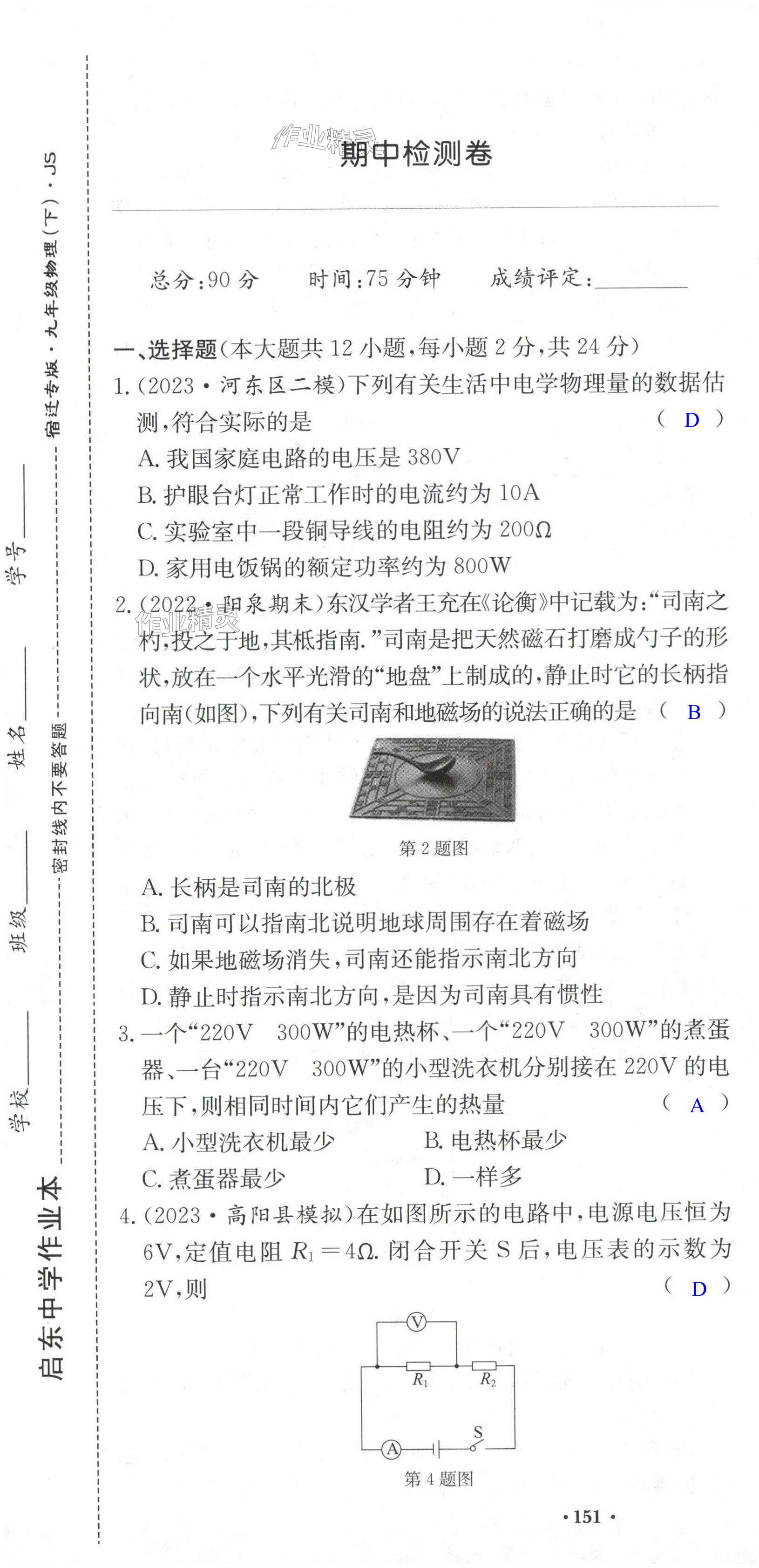 注:目前有些书本章节名称可能整理的还不是很完善,但都是按照顺序排列的,请同学们按照顺序仔细查找。练习册 2024年启东中学作业本九年级物理下册苏科版宿迁专版 答案主要是用来给同学们做完题方便对答案用的,请勿直接抄袭。