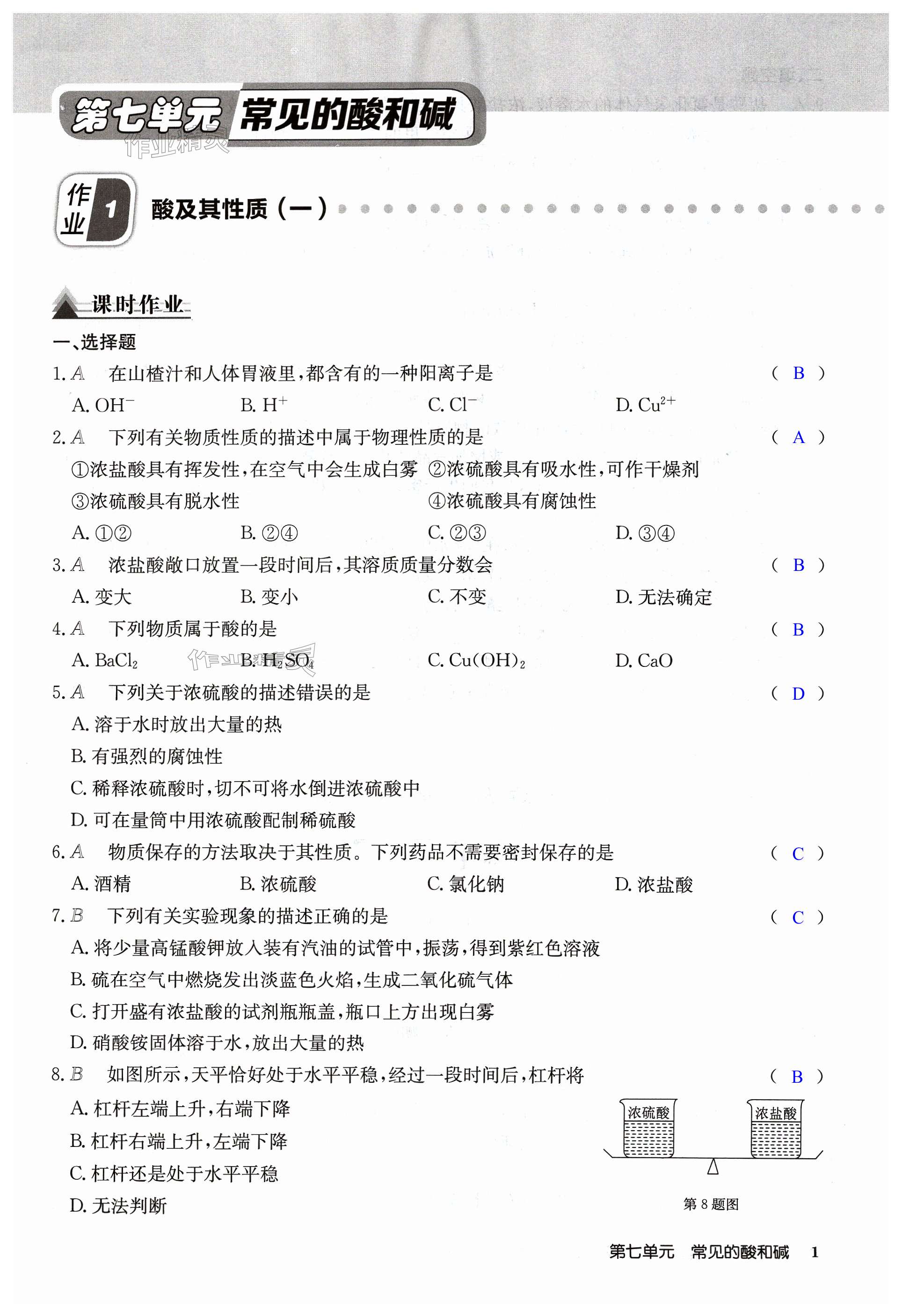 注:目前有些书本章节名称可能整理的还不是很完善,但都是按照顺序排列的,请同学们按照顺序仔细查找。练习册2024年启东中学作业本九年级化学下册鲁教版宿迁专版答案主要是用来给同学们做完题方便对答案用的,请勿直接抄袭。