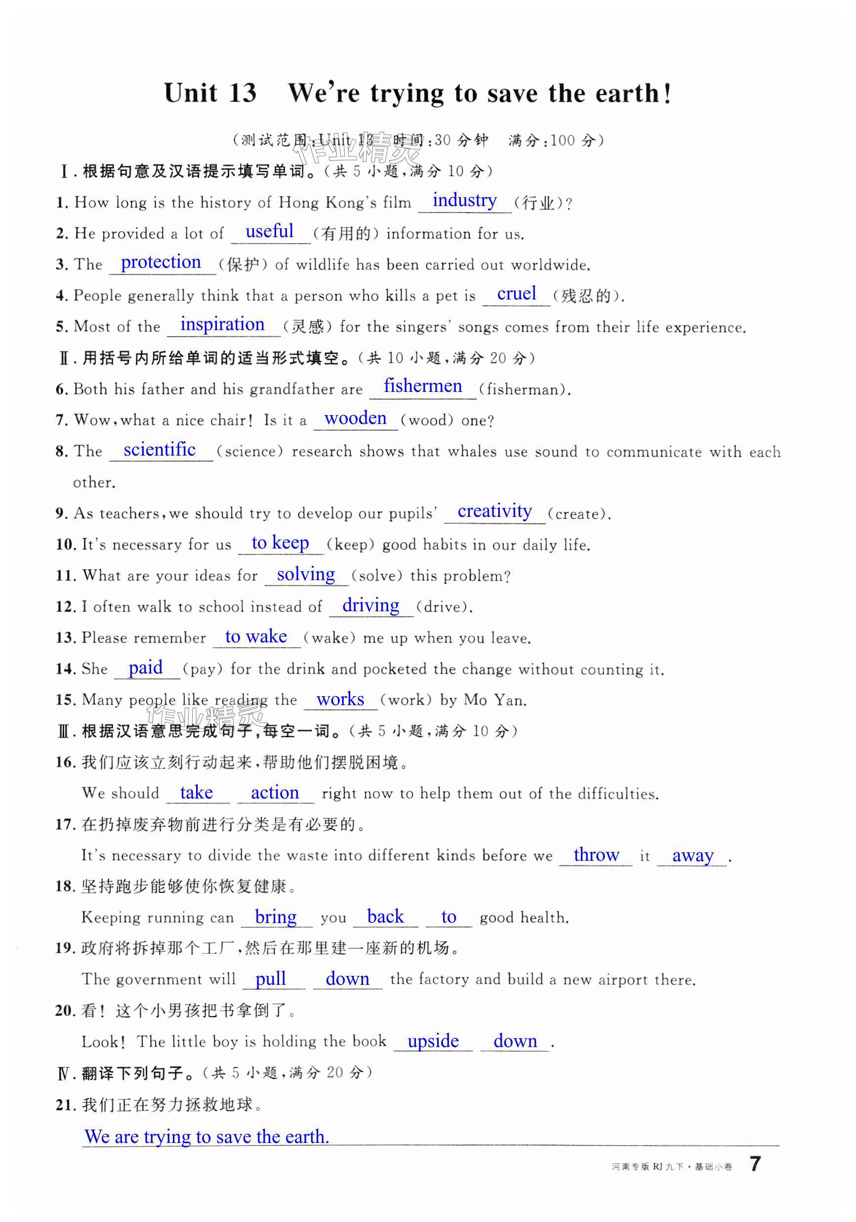 相关练习册答案