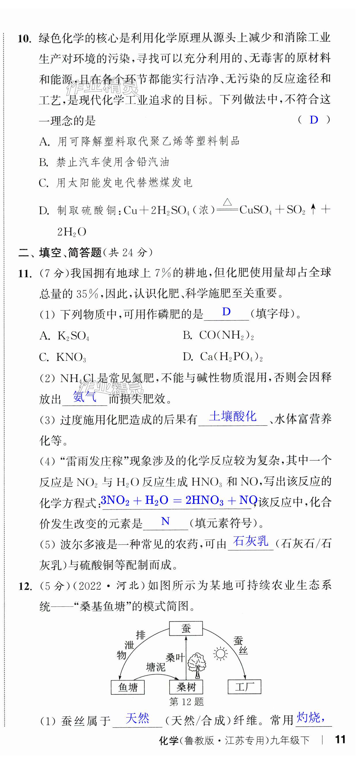 注:目前有些书本章节名称可能整理的还不是很完善,但都是按照顺序排列的,请同学们按照顺序仔细查找。练习册 2024年通城学典课时作业本九年级化学下册鲁教版江苏专版 答案主要是用来给同学们做完题方便对答案用的,请勿直接抄袭。