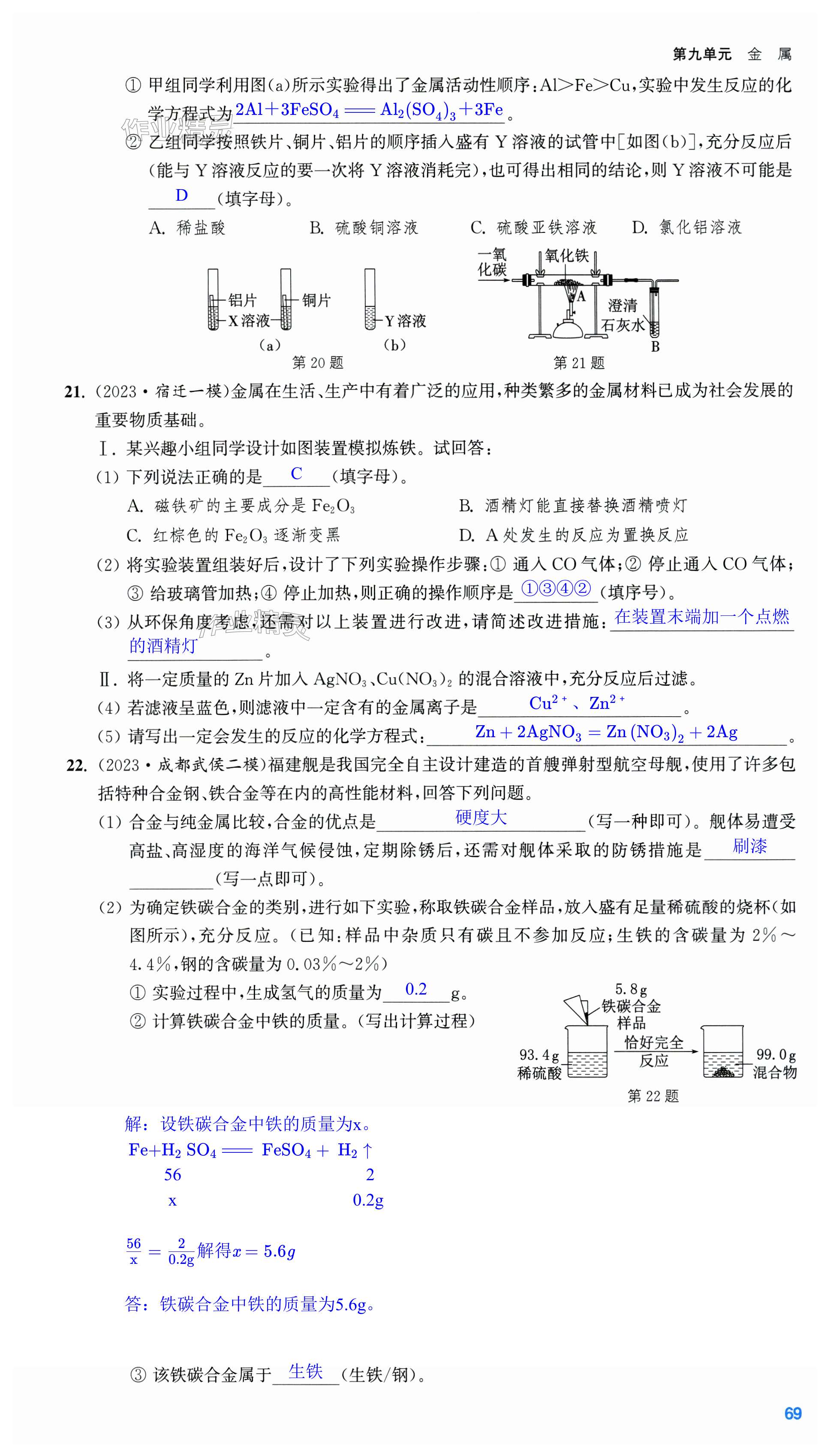 注:目前有些书本章节名称可能整理的还不是很完善,但都是按照顺序排列的,请同学们按照顺序仔细查找。练习册 2024年通城学典课时作业本九年级化学下册鲁教版江苏专版 答案主要是用来给同学们做完题方便对答案用的,请勿直接抄袭。