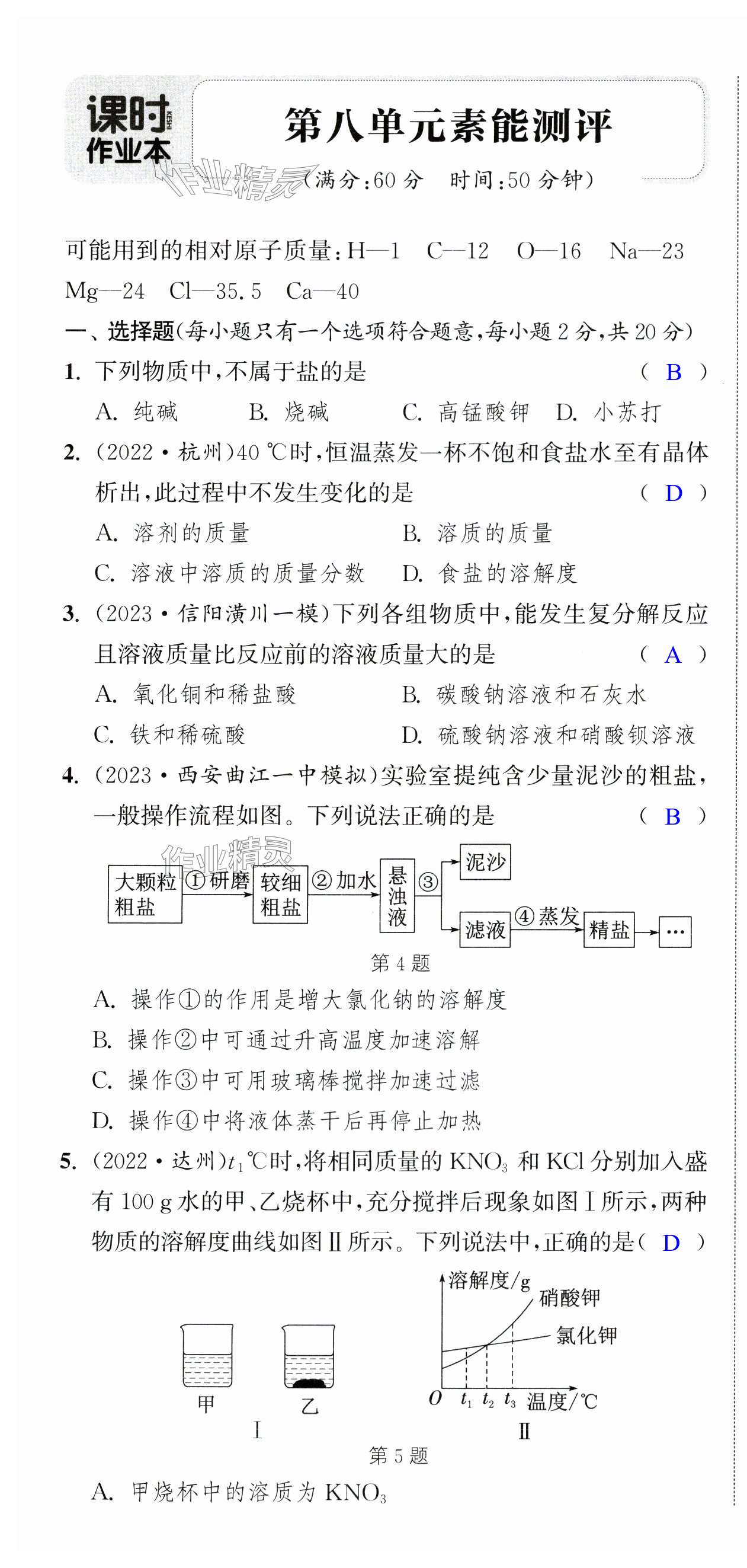注:目前有些书本章节名称可能整理的还不是很完善,但都是按照顺序排列的,请同学们按照顺序仔细查找。练习册 2024年通城学典课时作业本九年级化学下册鲁教版江苏专版 答案主要是用来给同学们做完题方便对答案用的,请勿直接抄袭。