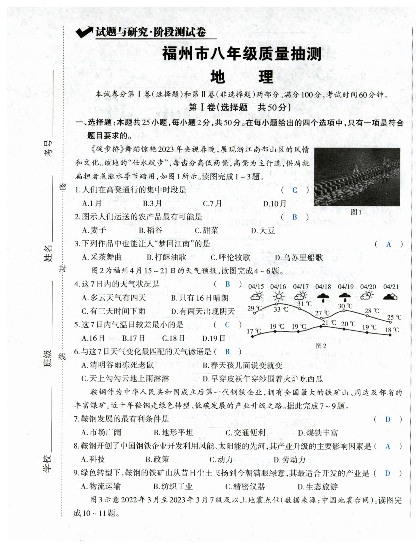 注:目前有些书本章节名称可能整理的还不是很完善,但都是按照顺序排列的,请同学们按照顺序仔细查找。练习册 2024年中学生学习报试题与研究地理福建专版 答案主要是用来给同学们做完题方便对答案用的,请勿直接抄袭。