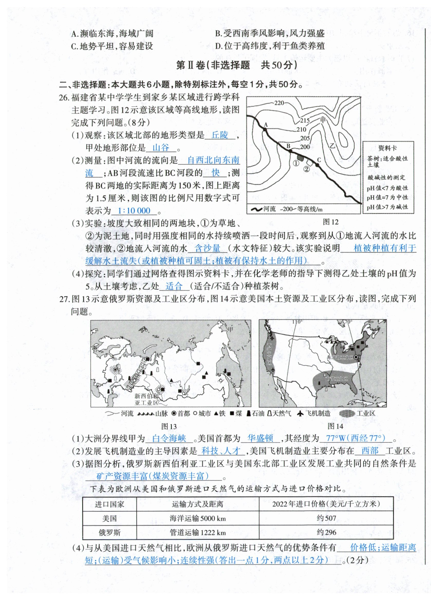 2024年中学生学习报试题与研究地理福建专版