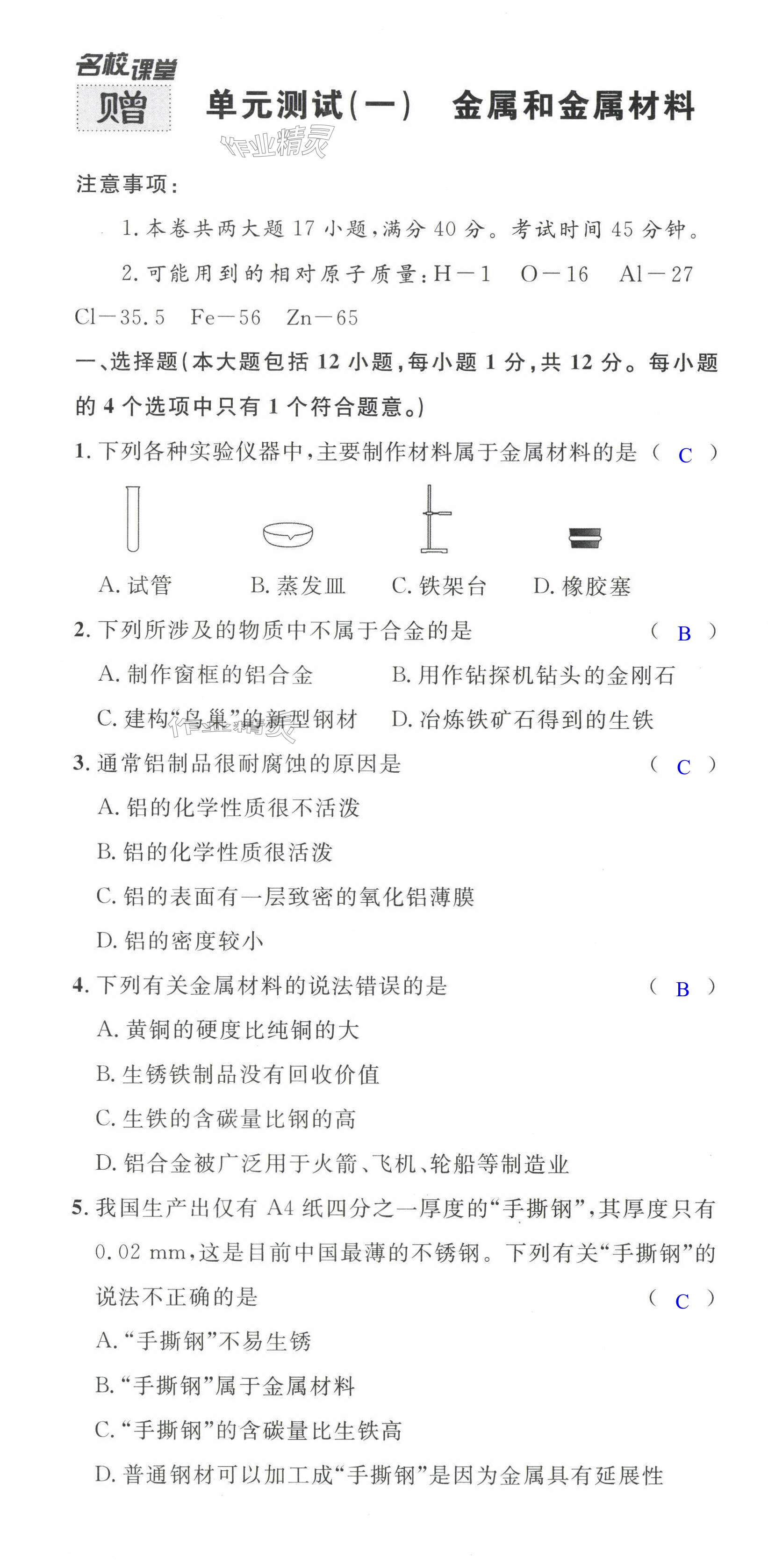 注:目前有些书本章节名称可能整理的还不是很完善,但都是按照顺序排列的,请同学们按照顺序仔细查找。练习册 2024年名校课堂九年级化学下册人教版安徽专版 答案主要是用来给同学们做完题方便对答案用的,请勿直接抄袭。