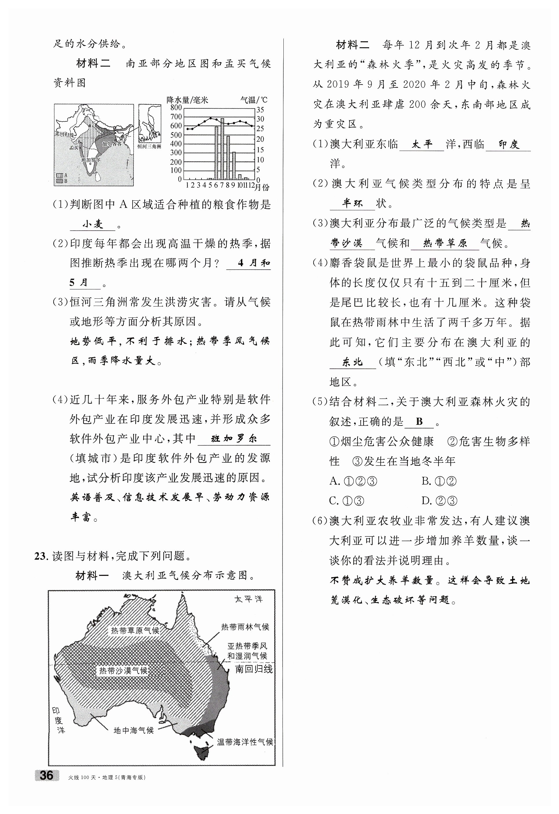 注:目前有些书本章节名称可能整理的还不是很完善,但都是按照顺序排列的,请同学们按照顺序仔细查找。练习册 2024年火线100天地理青海专版 答案主要是用来给同学们做完题方便对答案用的,请勿直接抄袭。