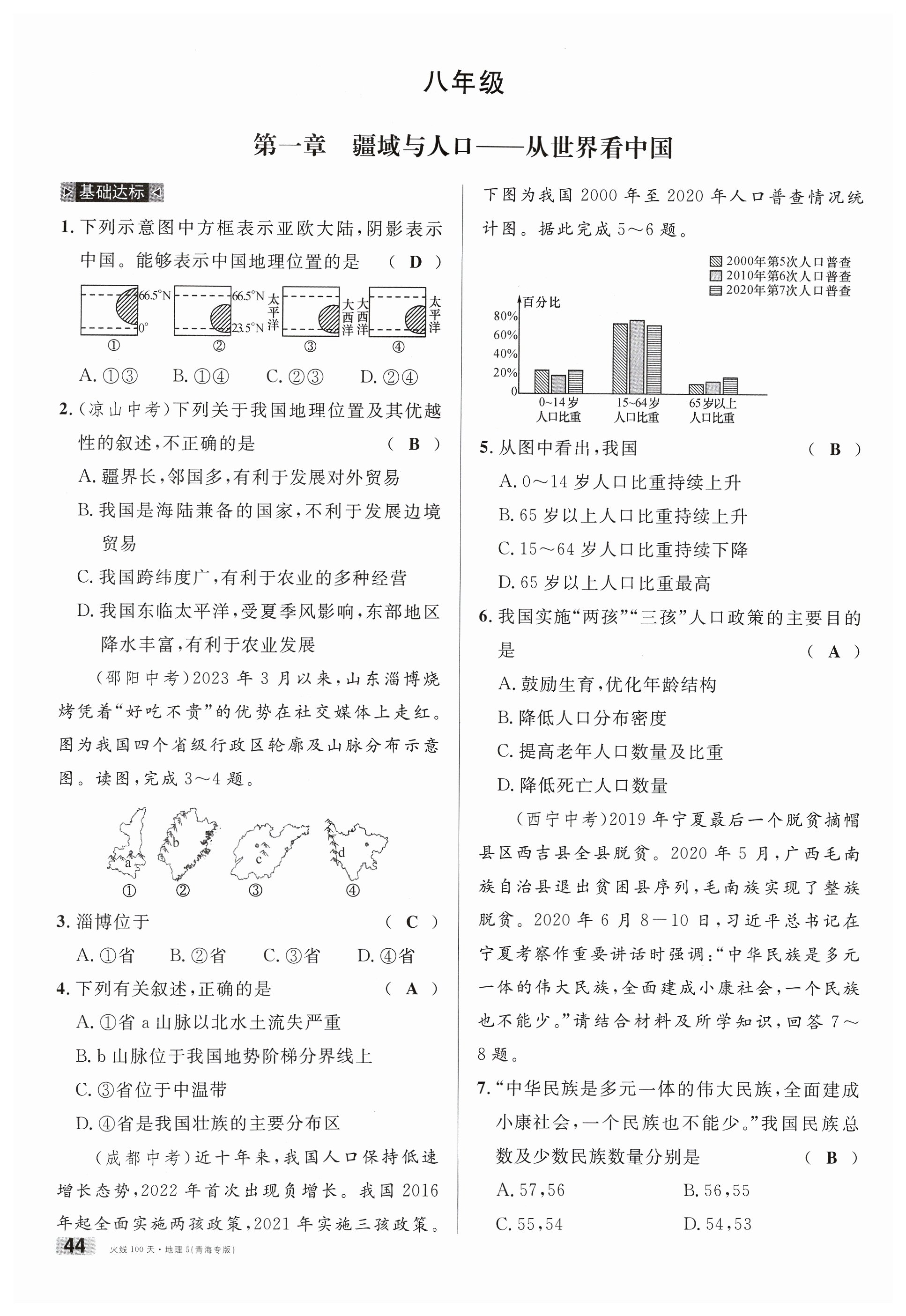 注:目前有些书本章节名称可能整理的还不是很完善,但都是按照顺序排列的,请同学们按照顺序仔细查找。练习册 2024年火线100天地理青海专版 答案主要是用来给同学们做完题方便对答案用的,请勿直接抄袭。