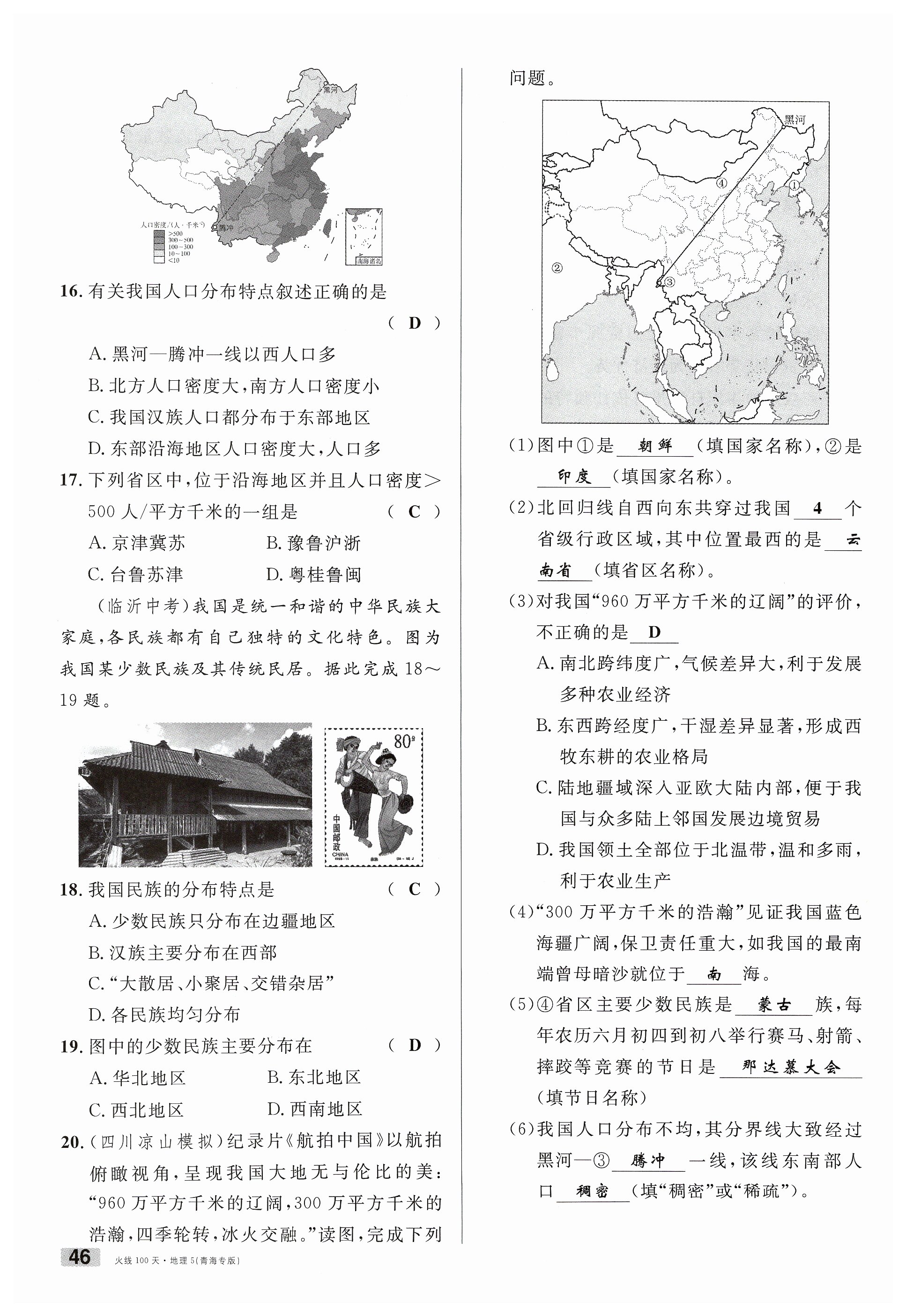 注:目前有些书本章节名称可能整理的还不是很完善,但都是按照顺序排列的,请同学们按照顺序仔细查找。练习册 2024年火线100天地理青海专版 答案主要是用来给同学们做完题方便对答案用的,请勿直接抄袭。