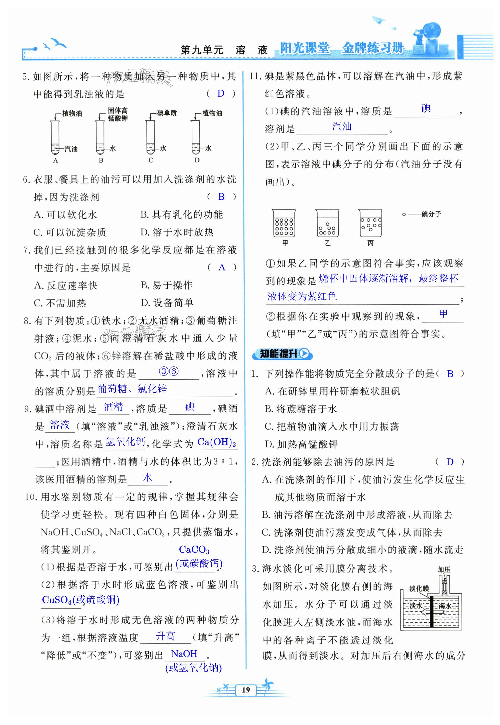 注:目前有些书本章节名称可能整理的还不是很完善,但都是按照顺序排列的,请同学们按照顺序仔细查找。练习册 2024年阳光课堂金牌练习册九年级化学下册人教版 答案主要是用来给同学们做完题方便对答案用的,请勿直接抄袭。