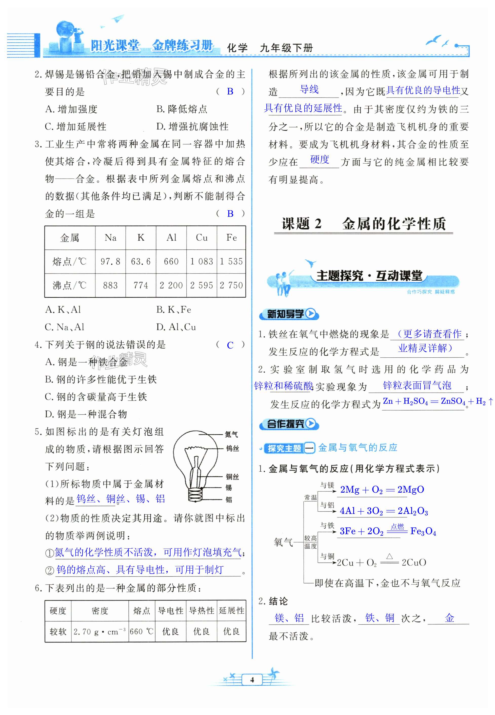 注:目前有些书本章节名称可能整理的还不是很完善,但都是按照顺序排列的,请同学们按照顺序仔细查找。练习册 2024年阳光课堂金牌练习册九年级化学下册人教版 答案主要是用来给同学们做完题方便对答案用的,请勿直接抄袭。