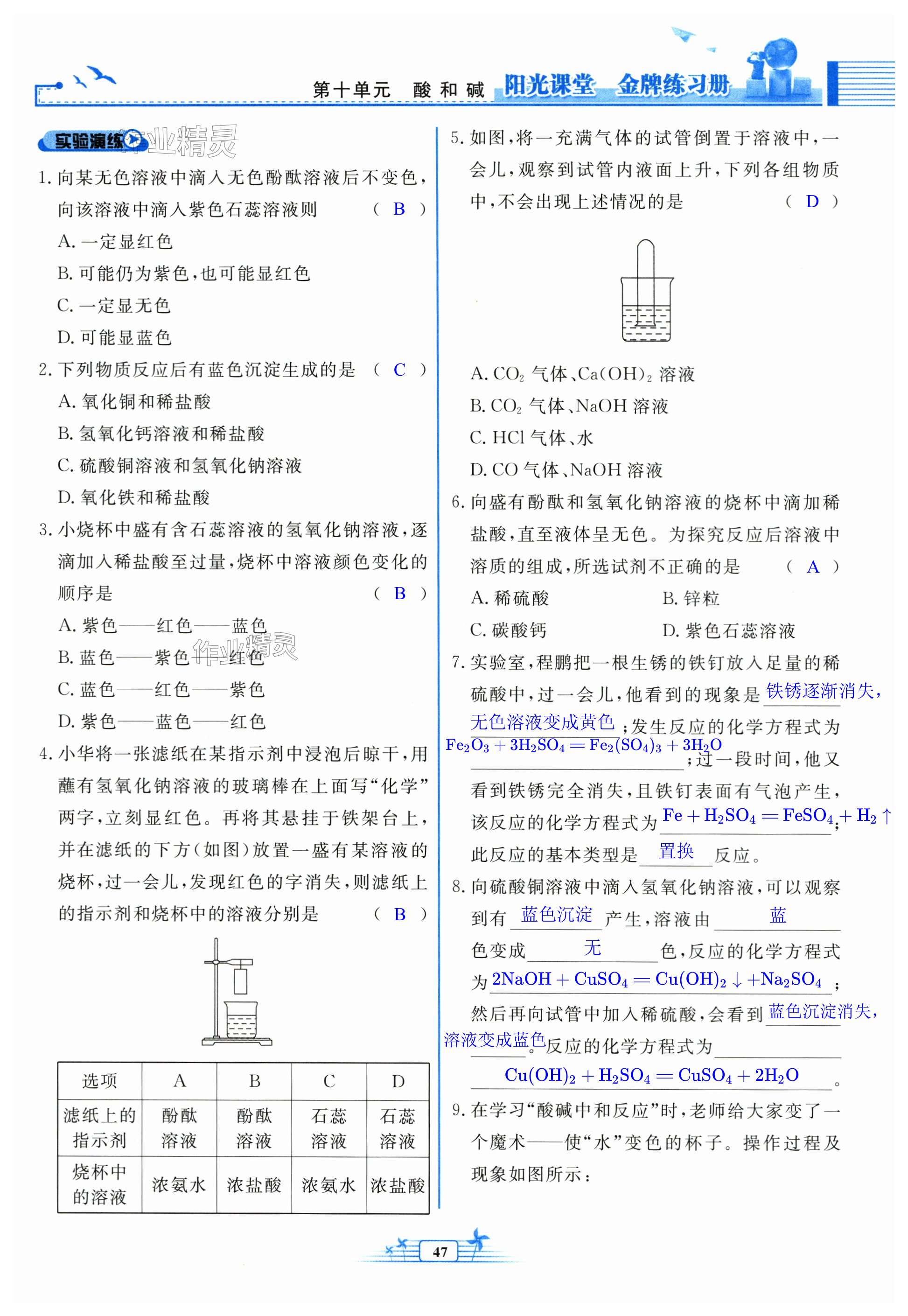注:目前有些书本章节名称可能整理的还不是很完善,但都是按照顺序排列的,请同学们按照顺序仔细查找。练习册 2024年阳光课堂金牌练习册九年级化学下册人教版 答案主要是用来给同学们做完题方便对答案用的,请勿直接抄袭。