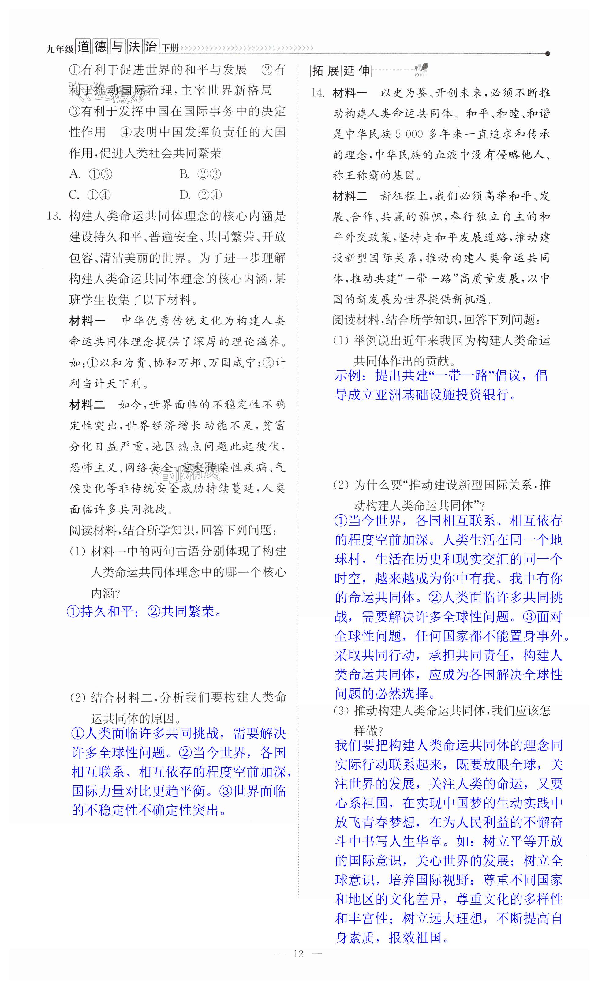 注:目前有些书本章节名称可能整理的还不是很完善,但都是按照顺序排列的,请同学们按照顺序仔细查找。练习册 2024年南通小题课时提优作业本九年级道德与法治下册人教版 答案主要是用来给同学们做完题方便对答案用的,请勿直接抄袭。