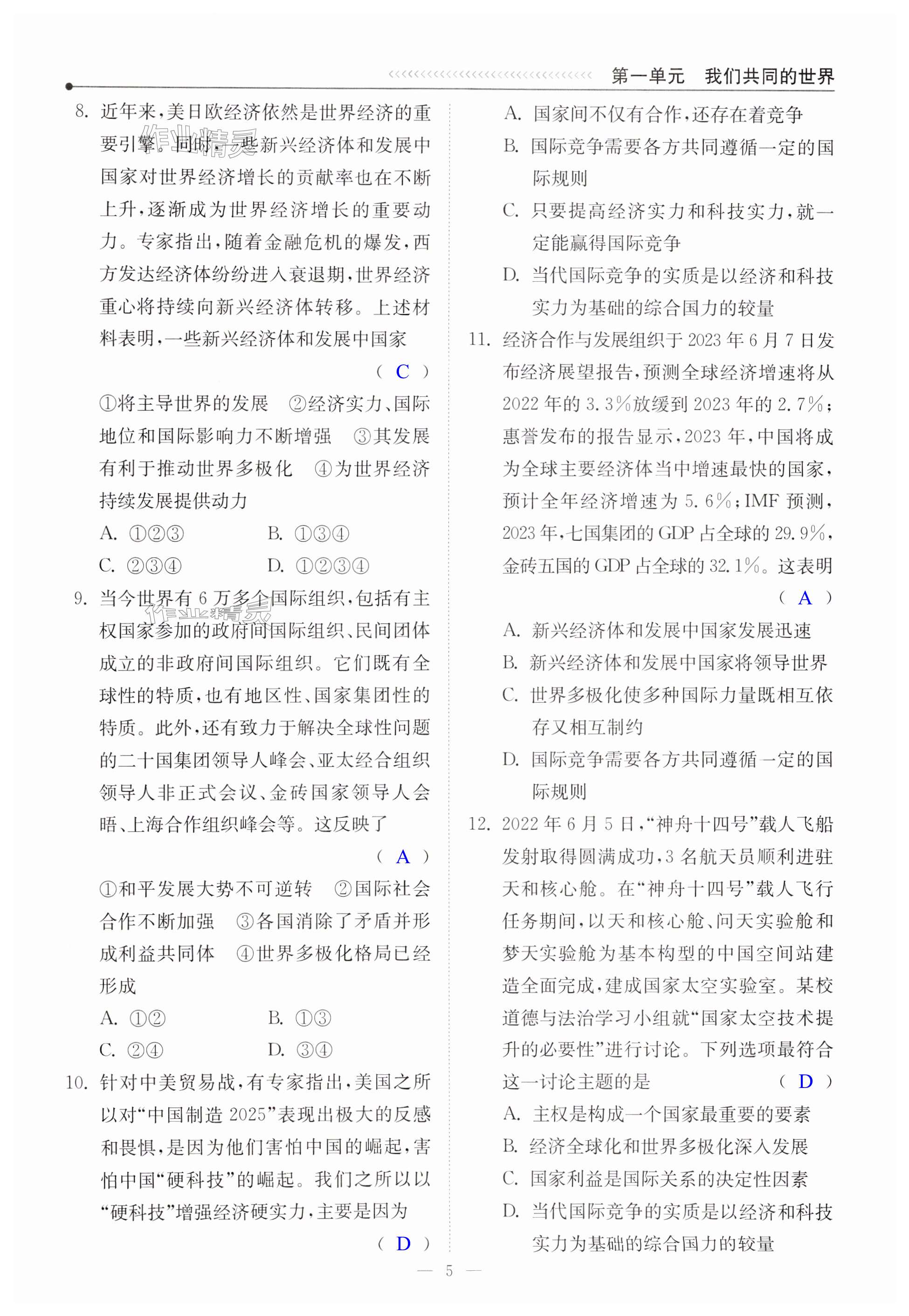 注:目前有些书本章节名称可能整理的还不是很完善,但都是按照顺序排列的,请同学们按照顺序仔细查找。练习册 2024年南通小题课时提优作业本九年级道德与法治下册人教版 答案主要是用来给同学们做完题方便对答案用的,请勿直接抄袭。