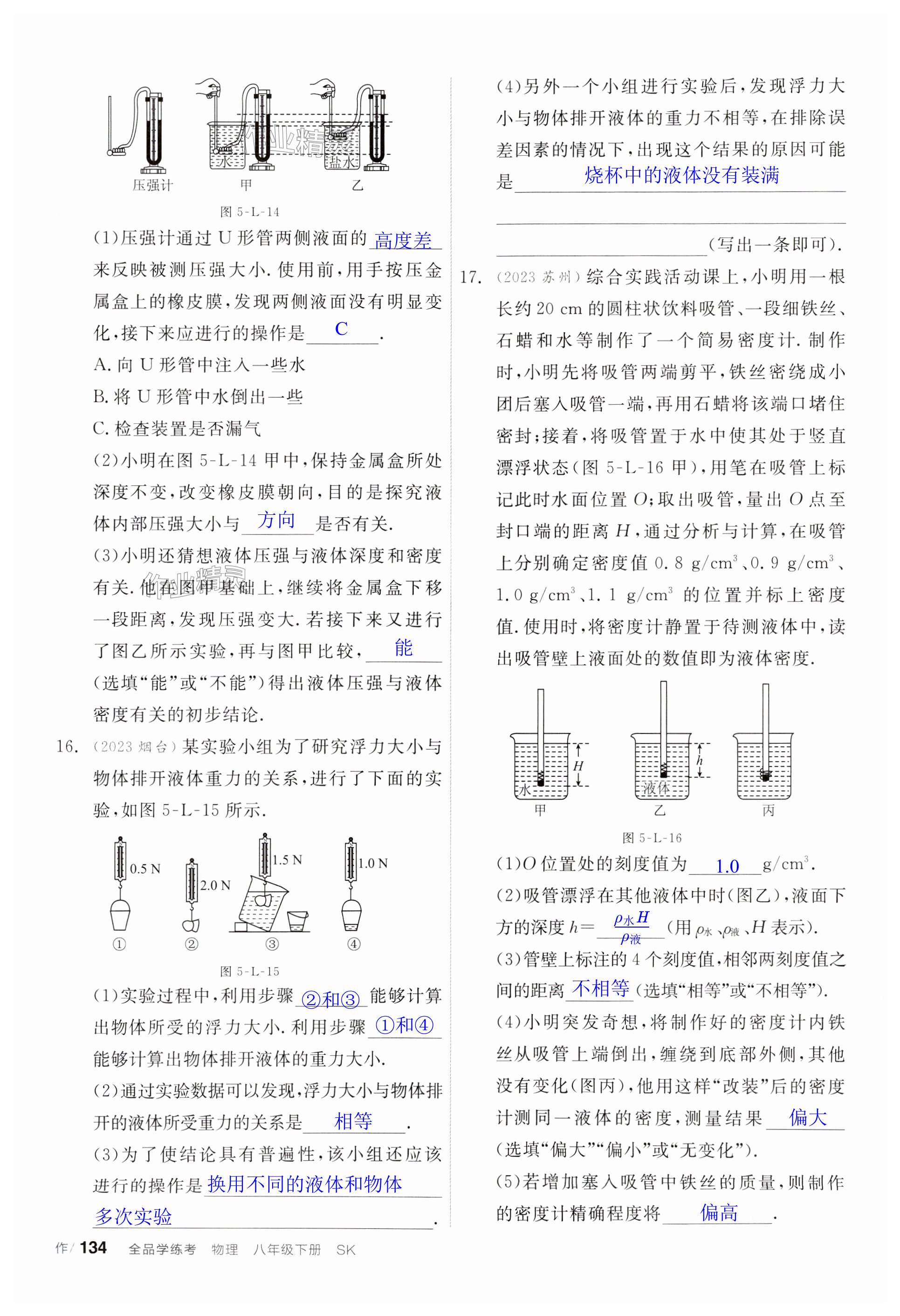 注:目前有些书本章节名称可能整理的还不是很完善,但都是按照顺序排列的,请同学们按照顺序仔细查找。练习册 2024年全品学练考八年级物理下册苏科版 答案主要是用来给同学们做完题方便对答案用的,请勿直接抄袭。