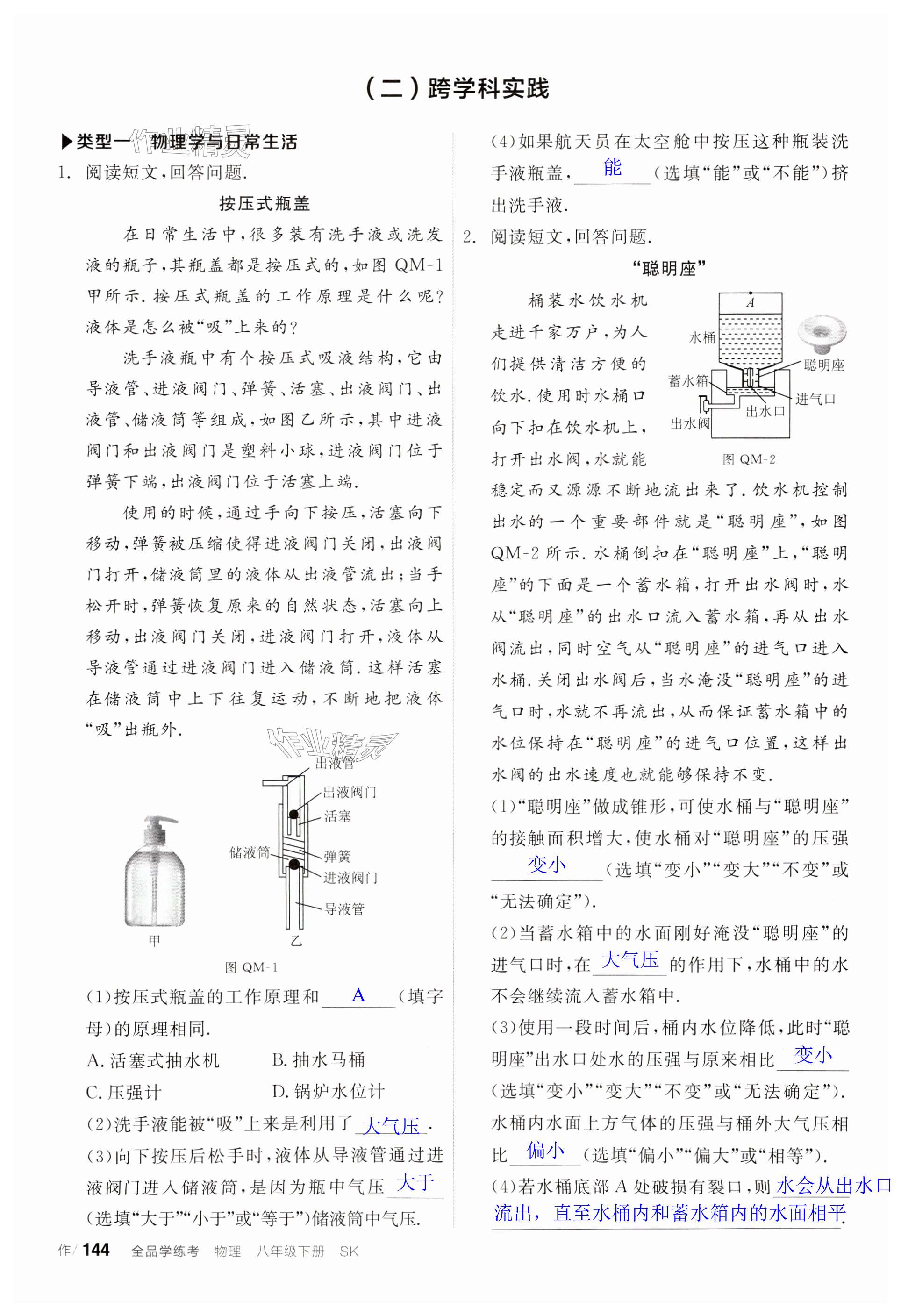 注:目前有些书本章节名称可能整理的还不是很完善,但都是按照顺序排列的,请同学们按照顺序仔细查找。练习册 2024年全品学练考八年级物理下册苏科版 答案主要是用来给同学们做完题方便对答案用的,请勿直接抄袭。
