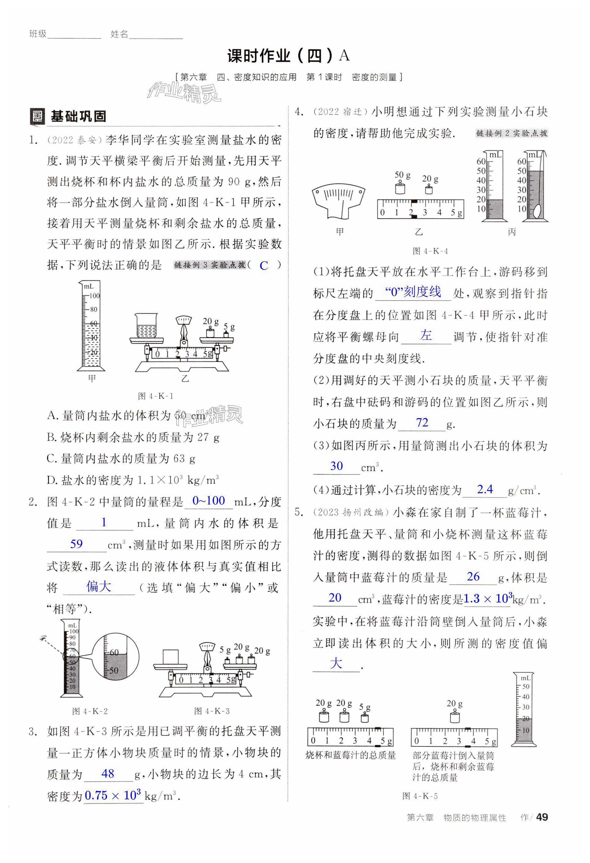 注:目前有些书本章节名称可能整理的还不是很完善,但都是按照顺序排列的,请同学们按照顺序仔细查找。练习册 2024年全品学练考八年级物理下册苏科版 答案主要是用来给同学们做完题方便对答案用的,请勿直接抄袭。