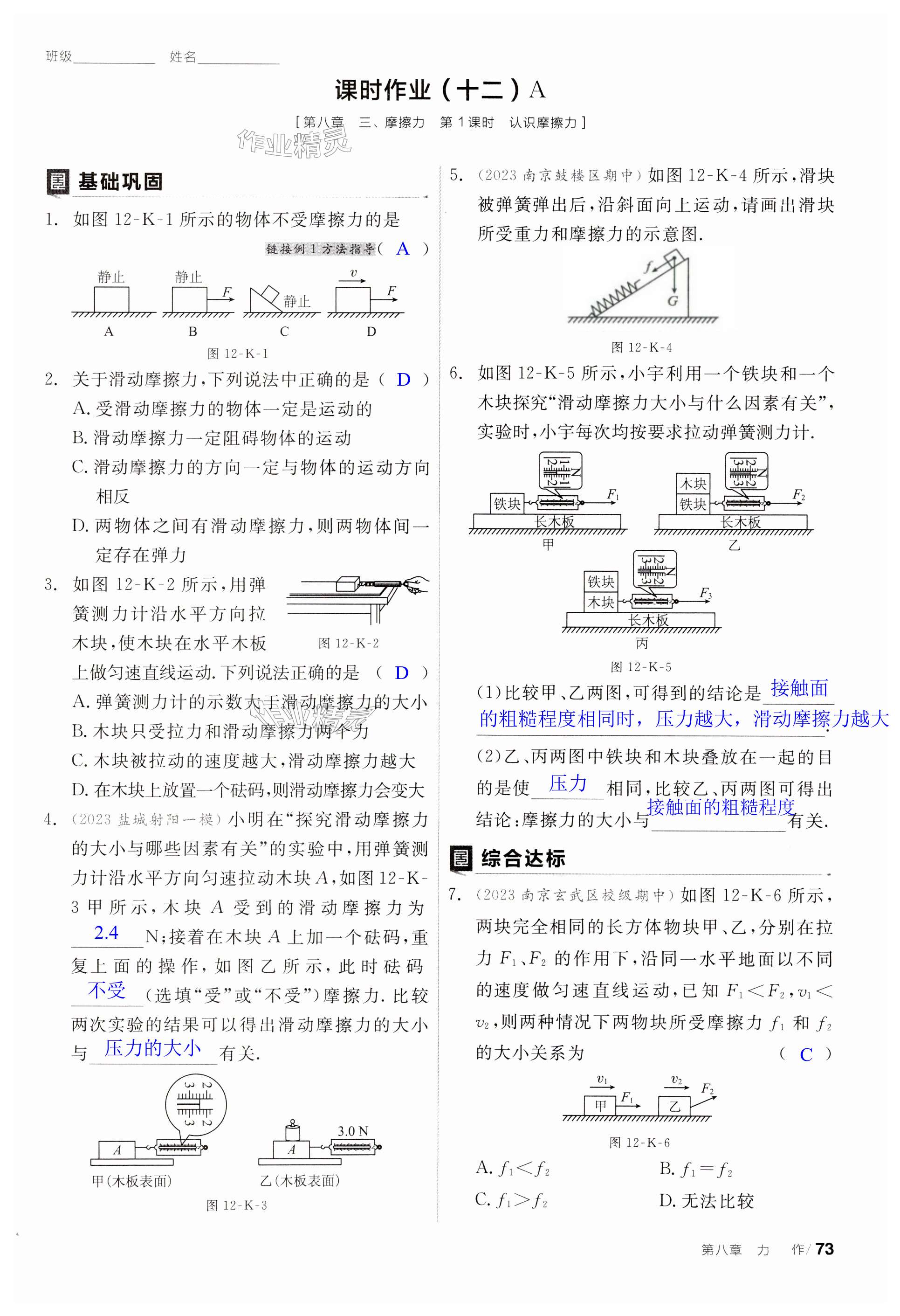 注:目前有些书本章节名称可能整理的还不是很完善,但都是按照顺序排列的,请同学们按照顺序仔细查找。练习册 2024年全品学练考八年级物理下册苏科版 答案主要是用来给同学们做完题方便对答案用的,请勿直接抄袭。