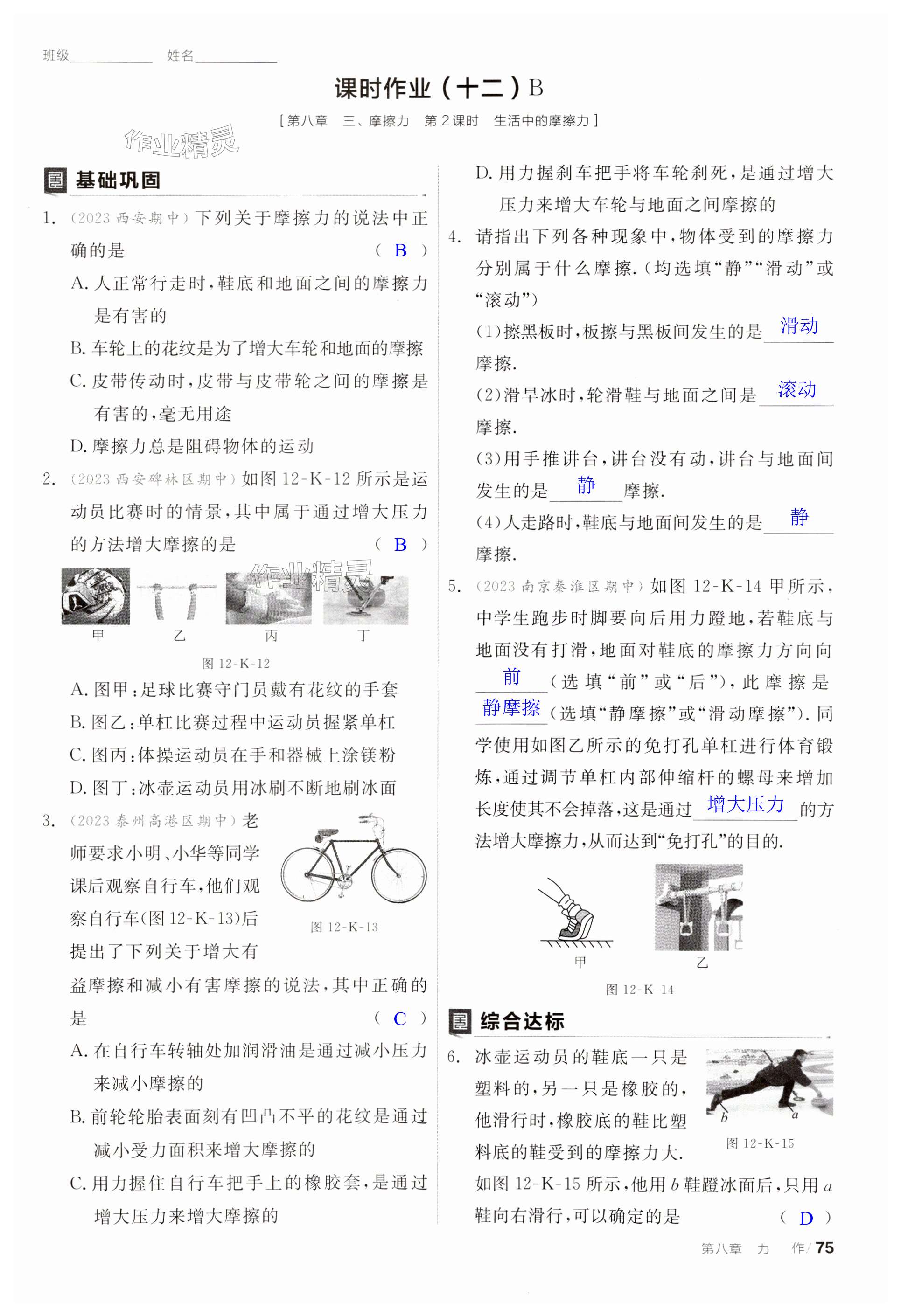 注:目前有些书本章节名称可能整理的还不是很完善,但都是按照顺序排列的,请同学们按照顺序仔细查找。练习册 2024年全品学练考八年级物理下册苏科版 答案主要是用来给同学们做完题方便对答案用的,请勿直接抄袭。
