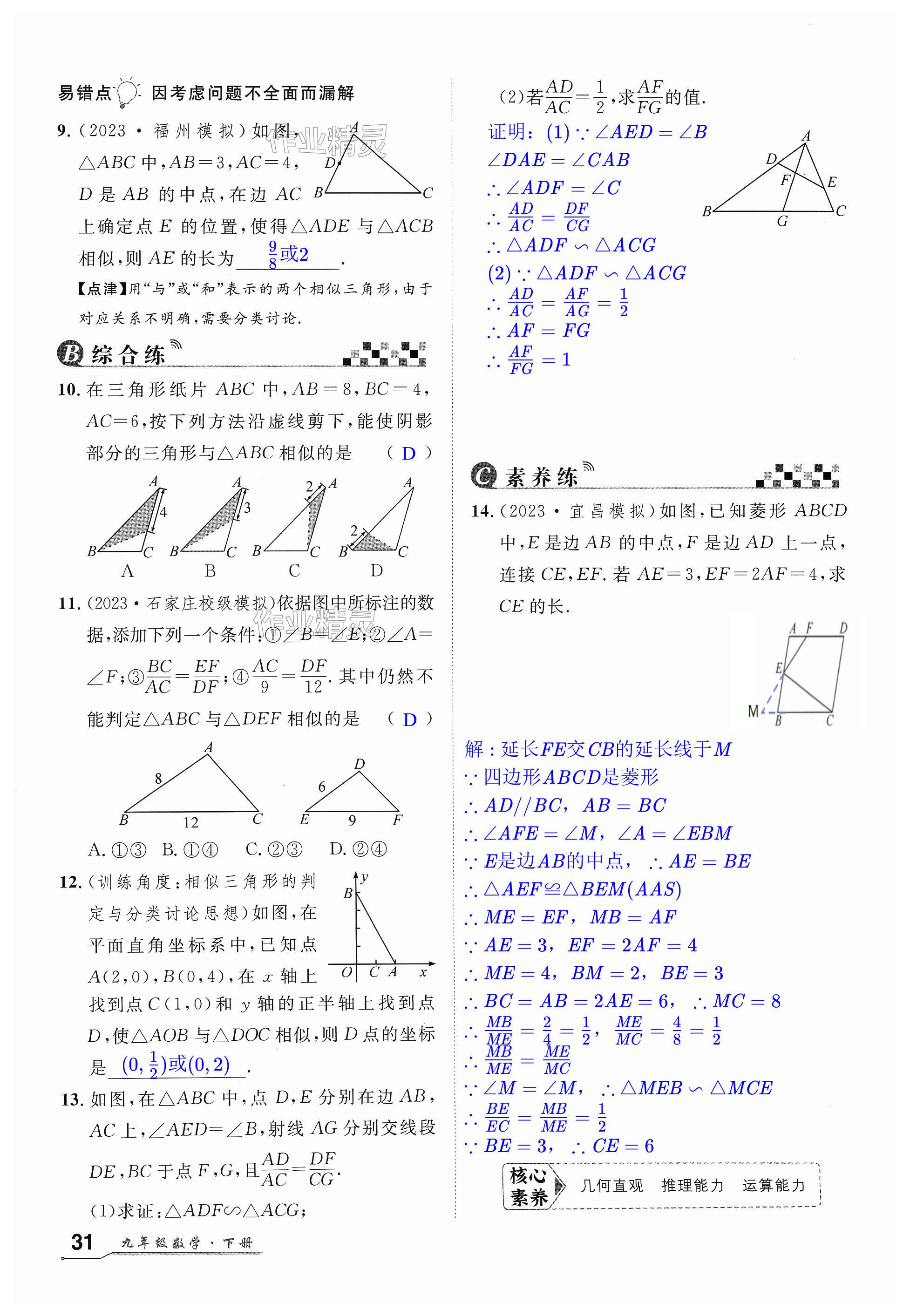 注:目前有些书本章节名称可能整理的还不是很完善,但都是按照顺序排列的,请同学们按照顺序仔细查找。练习册 2024年优质课堂九年级数学下册人教版湖北专版 答案主要是用来给同学们做完题方便对答案用的,请勿直接抄袭。