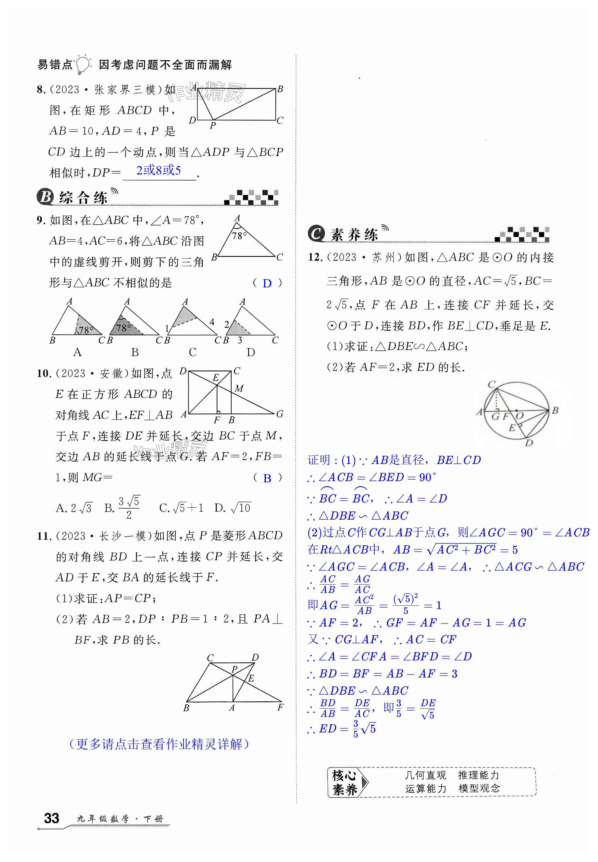 注:目前有些书本章节名称可能整理的还不是很完善,但都是按照顺序排列的,请同学们按照顺序仔细查找。练习册 2024年优质课堂九年级数学下册人教版湖北专版 答案主要是用来给同学们做完题方便对答案用的,请勿直接抄袭。