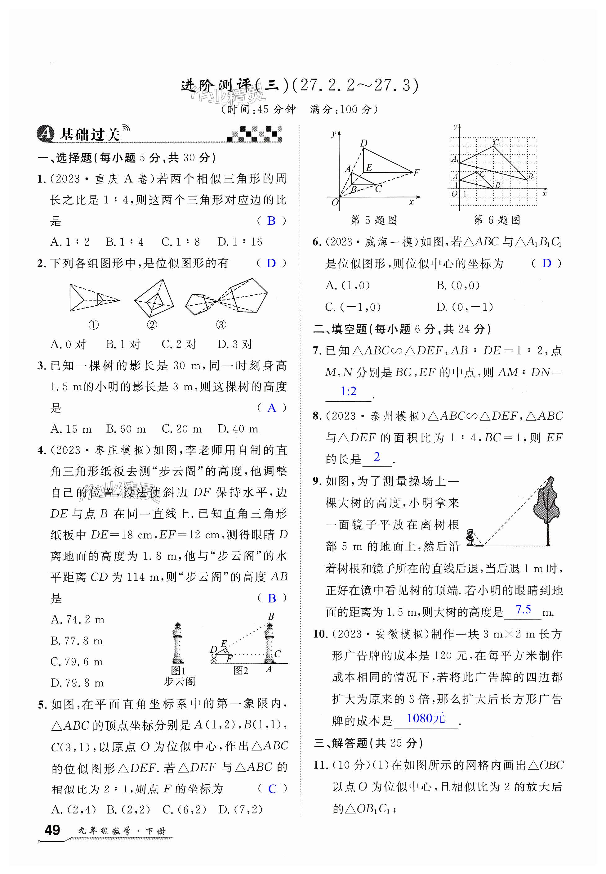 注:目前有些书本章节名称可能整理的还不是很完善,但都是按照顺序排列的,请同学们按照顺序仔细查找。练习册 2024年优质课堂九年级数学下册人教版湖北专版 答案主要是用来给同学们做完题方便对答案用的,请勿直接抄袭。