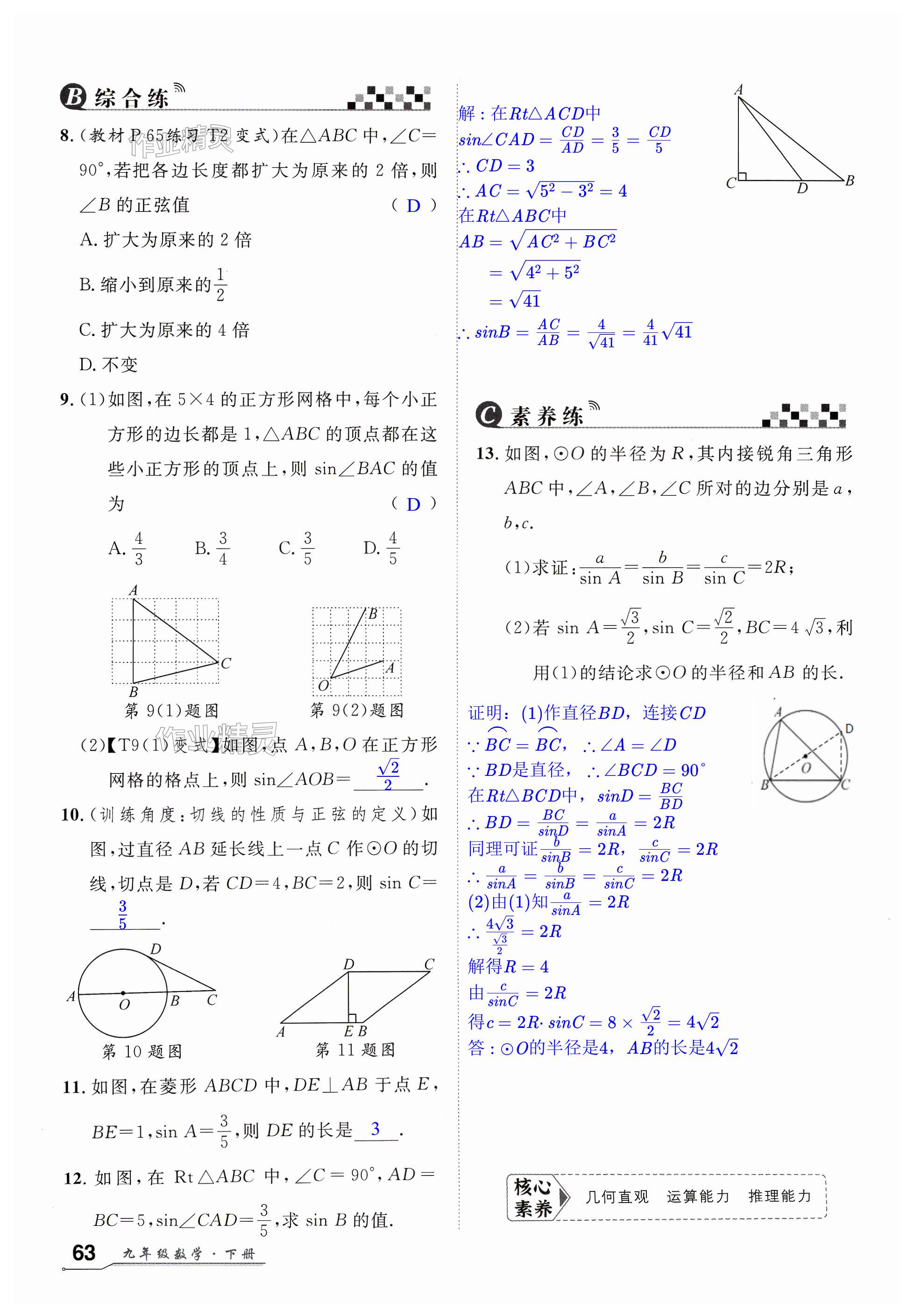 注:目前有些书本章节名称可能整理的还不是很完善,但都是按照顺序排列的,请同学们按照顺序仔细查找。练习册 2024年优质课堂九年级数学下册人教版湖北专版 答案主要是用来给同学们做完题方便对答案用的,请勿直接抄袭。