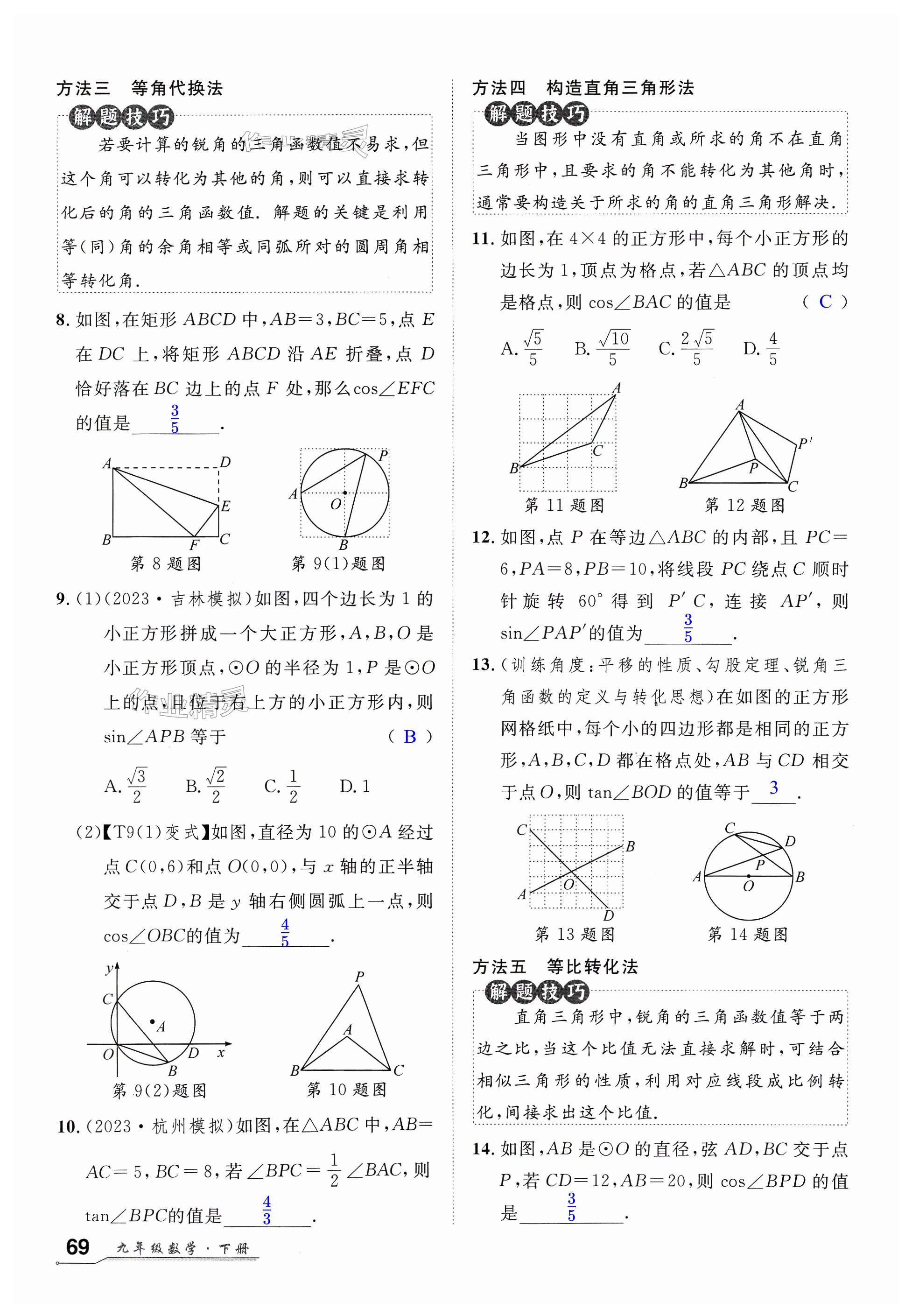 注:目前有些书本章节名称可能整理的还不是很完善,但都是按照顺序排列的,请同学们按照顺序仔细查找。练习册 2024年优质课堂九年级数学下册人教版湖北专版 答案主要是用来给同学们做完题方便对答案用的,请勿直接抄袭。