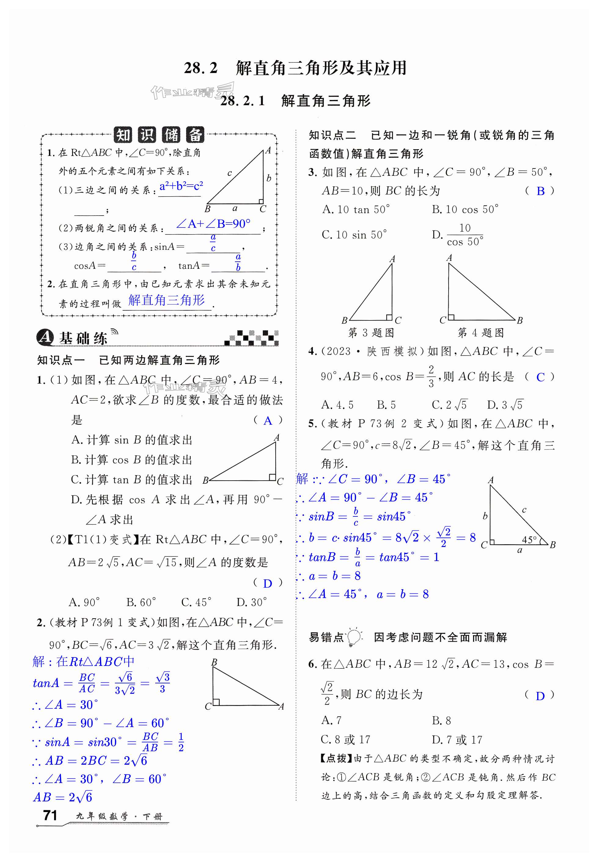注:目前有些书本章节名称可能整理的还不是很完善,但都是按照顺序排列的,请同学们按照顺序仔细查找。练习册 2024年优质课堂九年级数学下册人教版湖北专版 答案主要是用来给同学们做完题方便对答案用的,请勿直接抄袭。