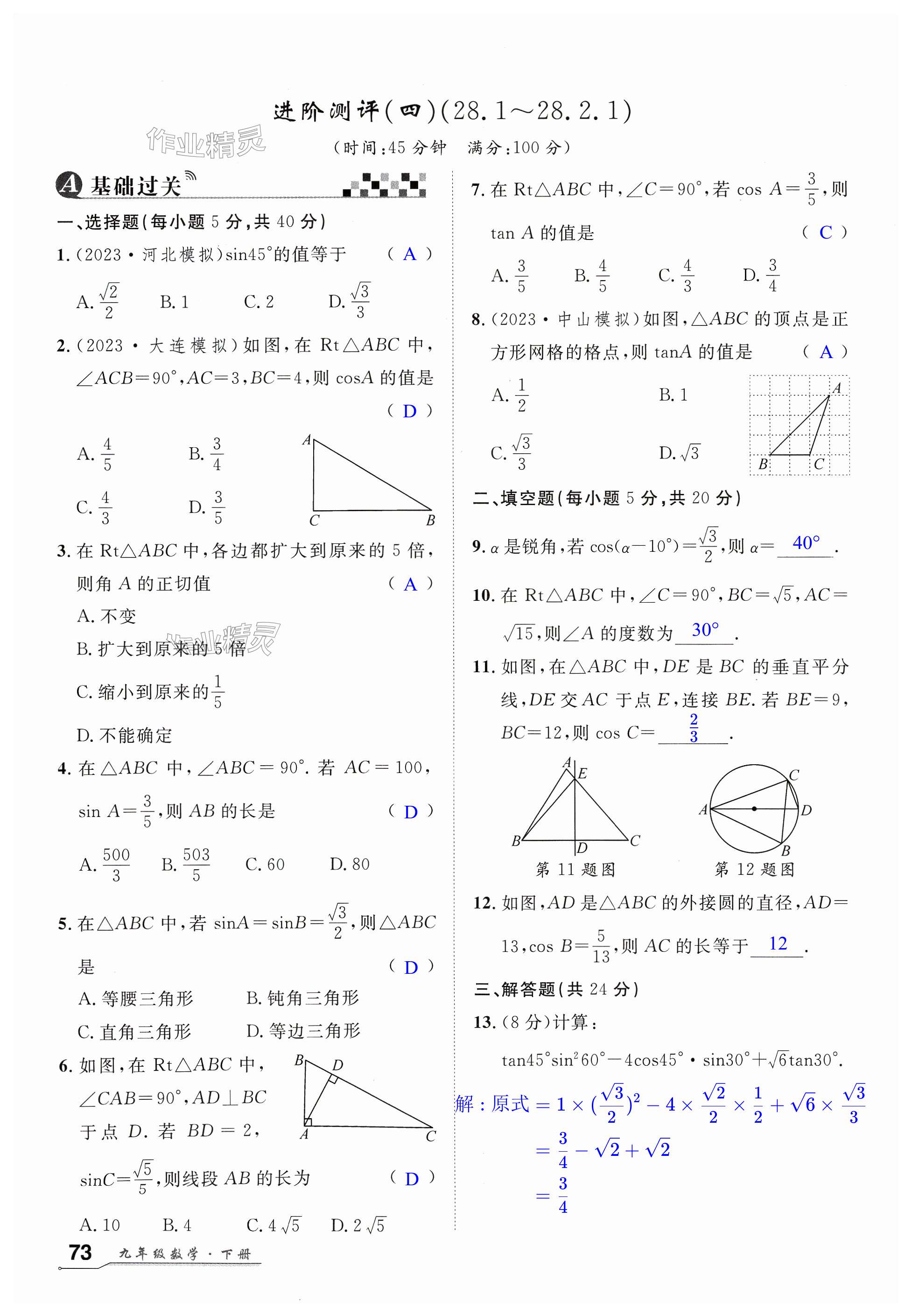 注:目前有些书本章节名称可能整理的还不是很完善,但都是按照顺序排列的,请同学们按照顺序仔细查找。练习册 2024年优质课堂九年级数学下册人教版湖北专版 答案主要是用来给同学们做完题方便对答案用的,请勿直接抄袭。