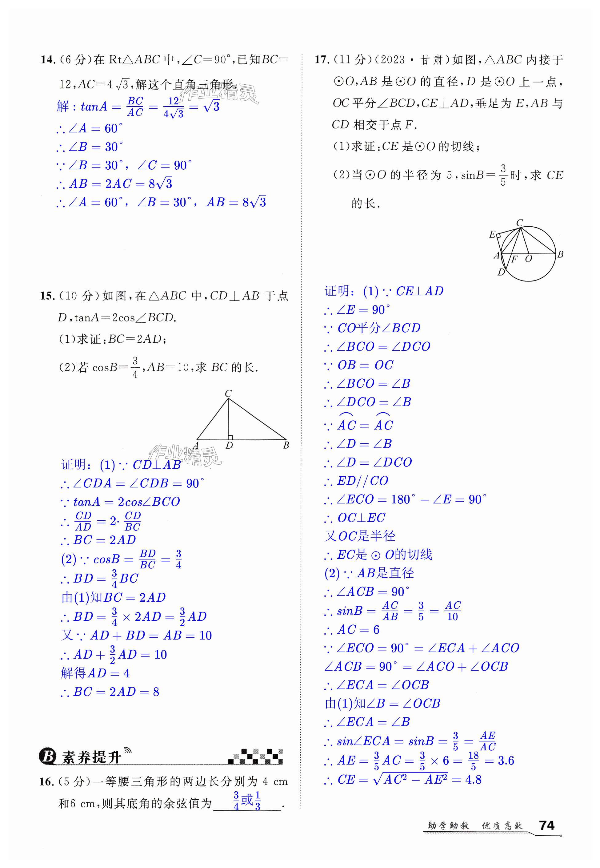 注:目前有些书本章节名称可能整理的还不是很完善,但都是按照顺序排列的,请同学们按照顺序仔细查找。练习册 2024年优质课堂九年级数学下册人教版湖北专版 答案主要是用来给同学们做完题方便对答案用的,请勿直接抄袭。