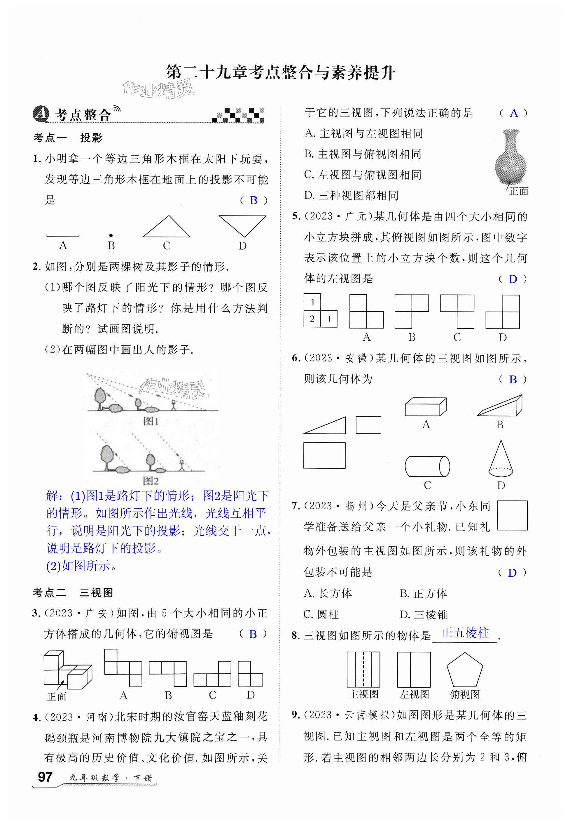 注:目前有些书本章节名称可能整理的还不是很完善,但都是按照顺序排列的,请同学们按照顺序仔细查找。练习册 2024年优质课堂九年级数学下册人教版湖北专版 答案主要是用来给同学们做完题方便对答案用的,请勿直接抄袭。