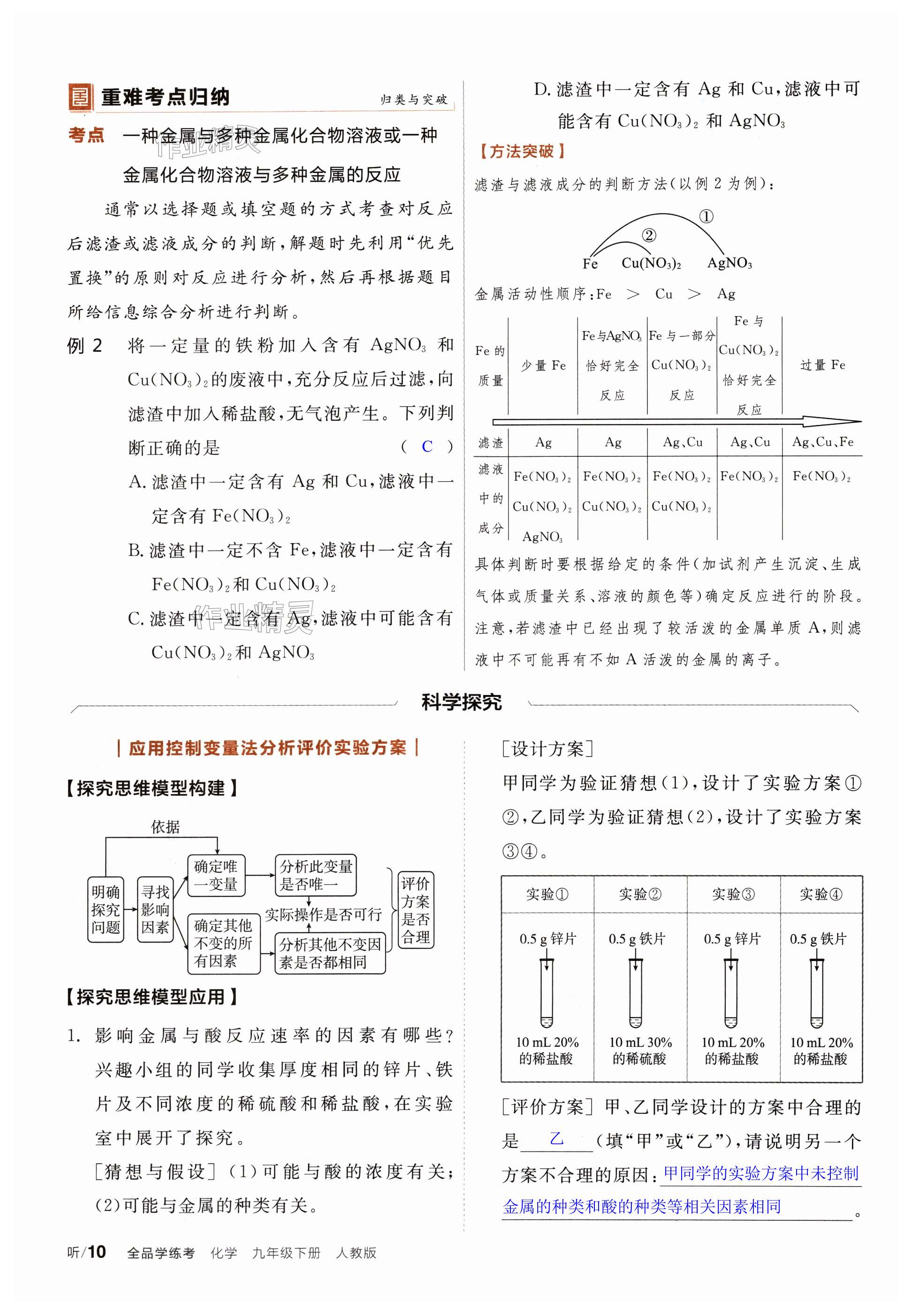 注:目前有些书本章节名称可能整理的还不是很完善,但都是按照顺序排列的,请同学们按照顺序仔细查找。练习册 2024年全品学练考九年级化学下册人教版 答案主要是用来给同学们做完题方便对答案用的,请勿直接抄袭。