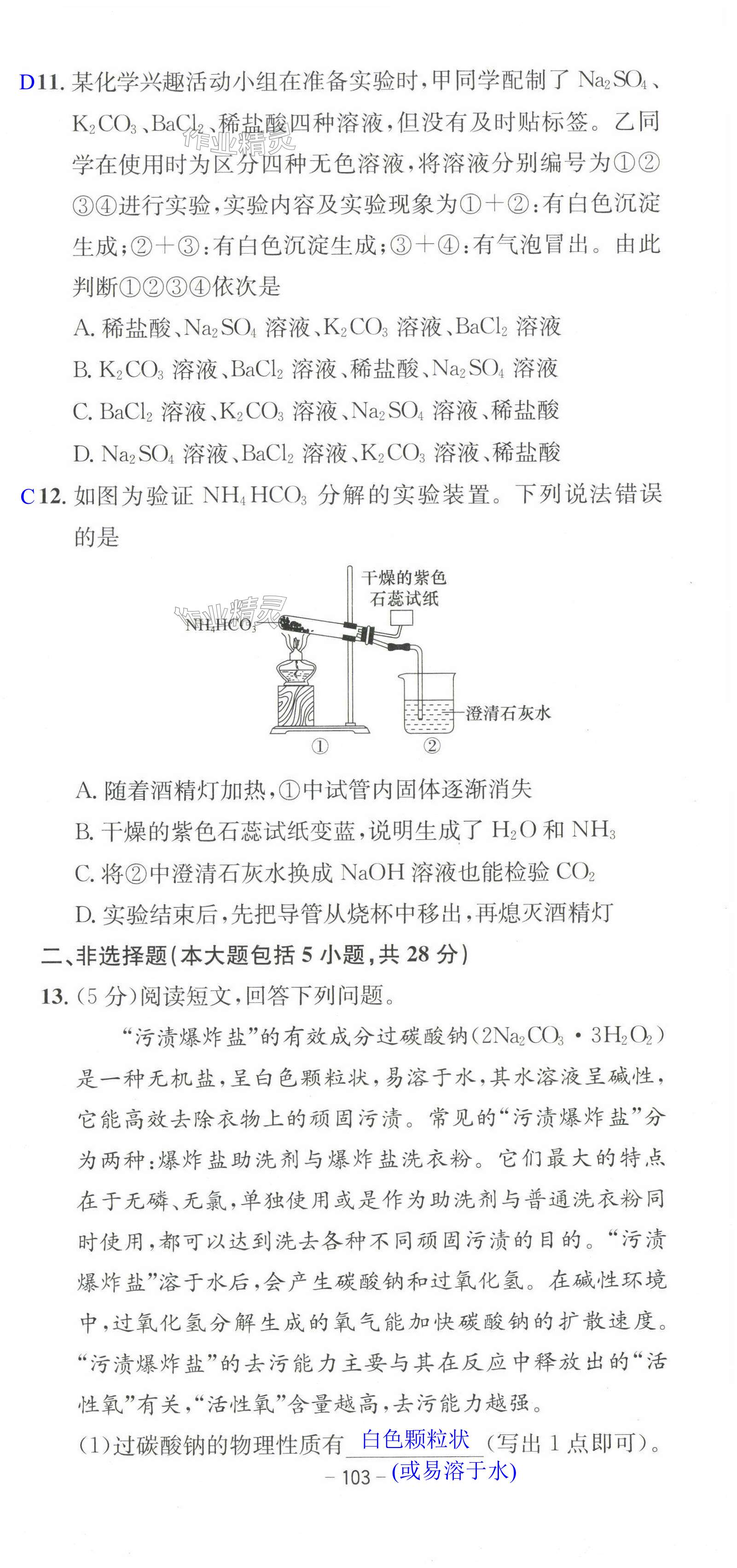 注:目前有些书本章节名称可能整理的还不是很完善,但都是按照顺序排列的,请同学们按照顺序仔细查找。练习册 2024年课时A计划九年级化学下册人教版安徽专版 答案主要是用来给同学们做完题方便对答案用的,请勿直接抄袭。