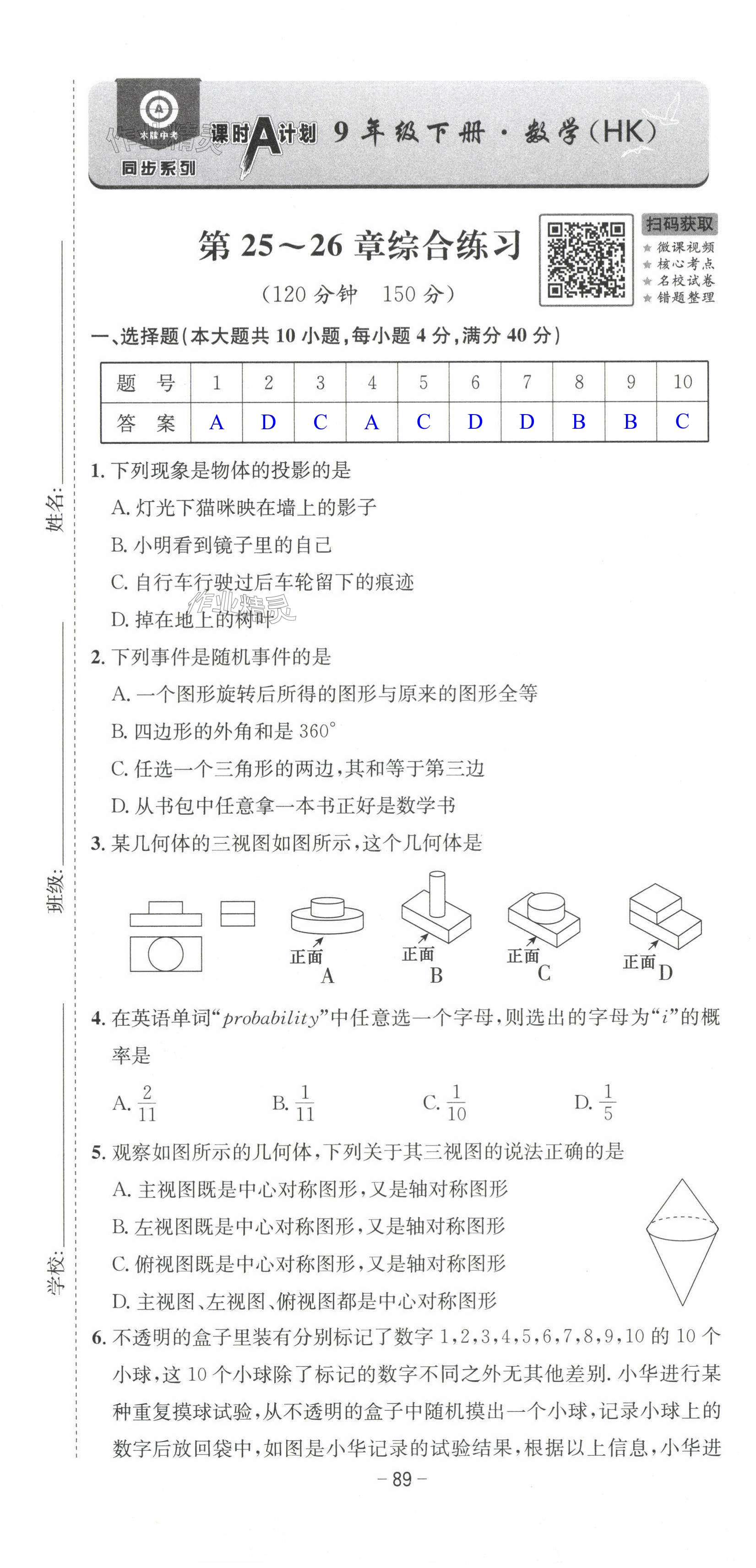 注:目前有些书本章节名称可能整理的还不是很完善,但都是按照顺序排列的,请同学们按照顺序仔细查找。练习册 2024年课时A计划九年级数学下册沪科版安徽专版 答案主要是用来给同学们做完题方便对答案用的,请勿直接抄袭。