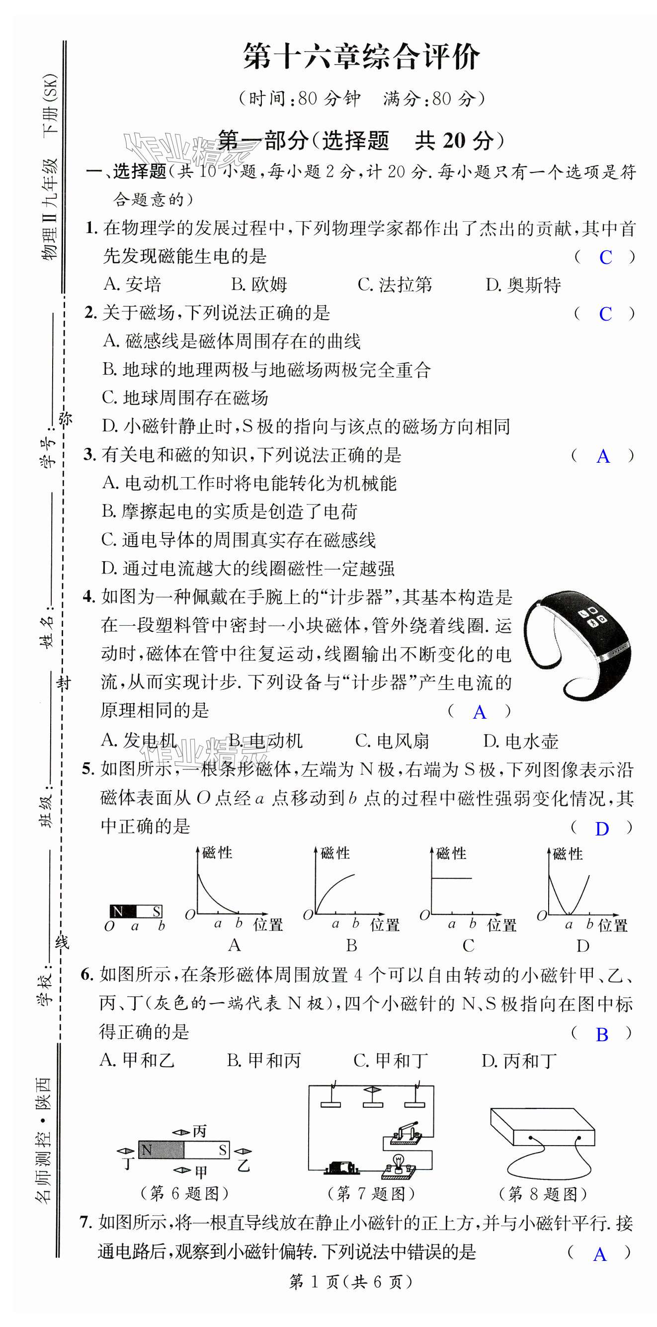注:目前有些书本章节名称可能整理的还不是很完善,但都是按照顺序排列的,请同学们按照顺序仔细查找。练习册 2024年名师测控九年级物理下册苏科版陕西专版 答案主要是用来给同学们做完题方便对答案用的,请勿直接抄袭。