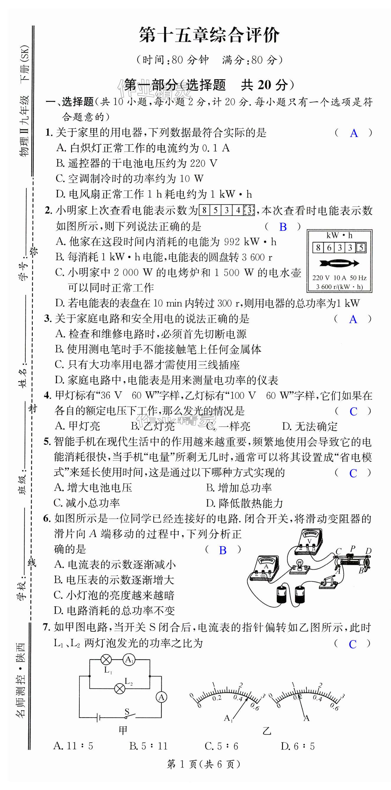 注:目前有些书本章节名称可能整理的还不是很完善,但都是按照顺序排列的,请同学们按照顺序仔细查找。练习册 2024年名师测控九年级物理下册苏科版陕西专版 答案主要是用来给同学们做完题方便对答案用的,请勿直接抄袭。