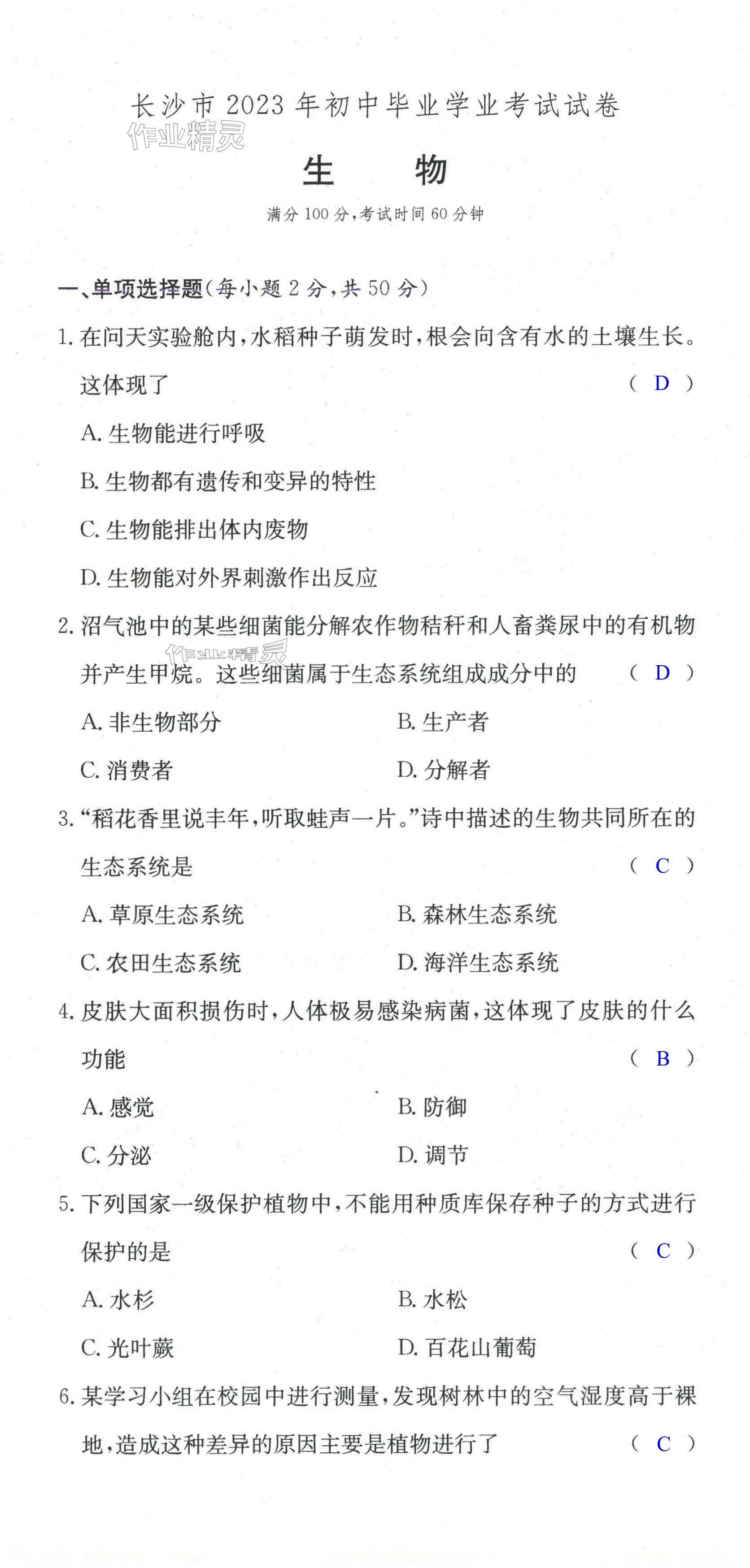 注:目前有些书本章节名称可能整理的还不是很完善,但都是按照顺序排列的,请同学们按照顺序仔细查找。练习册 2024年湖南中考必备生物 答案主要是用来给同学们做完题方便对答案用的,请勿直接抄袭。